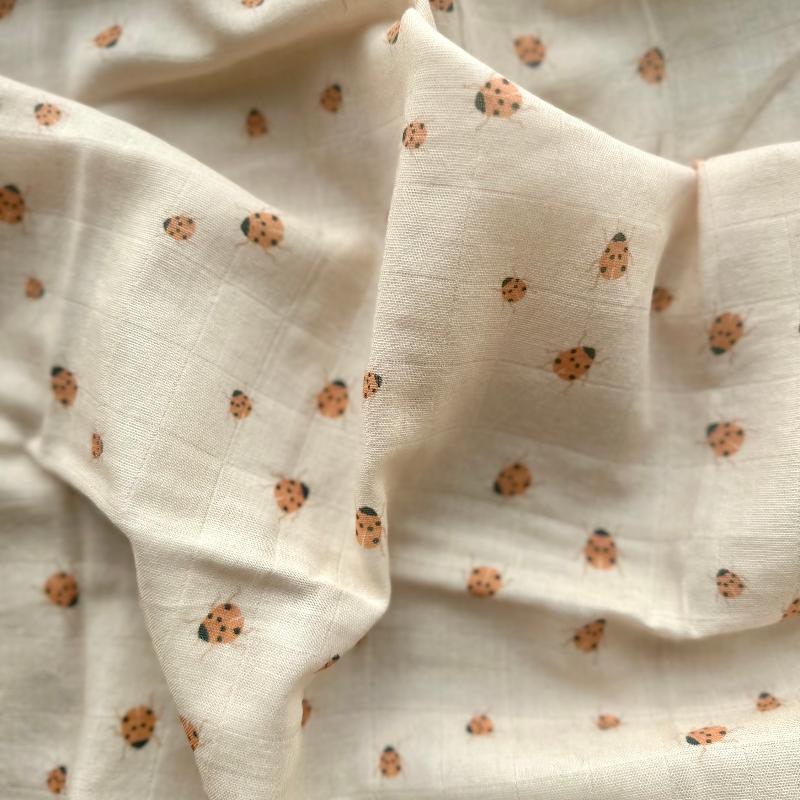 Воздушные хлопковые пеленки, которые становятся мягче после каждой стирки. Хорошо пропускают воздух, быстро сохнут и не грубеют. Можно использовать для пеленания, накрыть в коляске вместо одеяла, подложить в кроватку или вытереть после купания. В наборе шесть штук в розово-бежевых тонах с принтом божьей коровки. Размер каждой пеленки позволяет использовать её по-разному. Стирать можно в машинке.