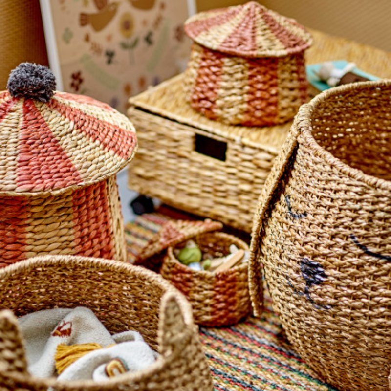 Набор плетеных корзин "Ruddi" от Bloomingville MINI — это практичное и стильное решение для хранения вещей. В комплект входят две корзины с крышками, которые помогают поддерживать порядок в доме. Плетеная текстура и нейтральный цвет подходят для различных интерьеров, добавляя уют и гармонию. Эти корзины могут быть использованы для хранения игрушек, белья или других мелких вещей, обеспечивая удобство и аккуратность в доме.
