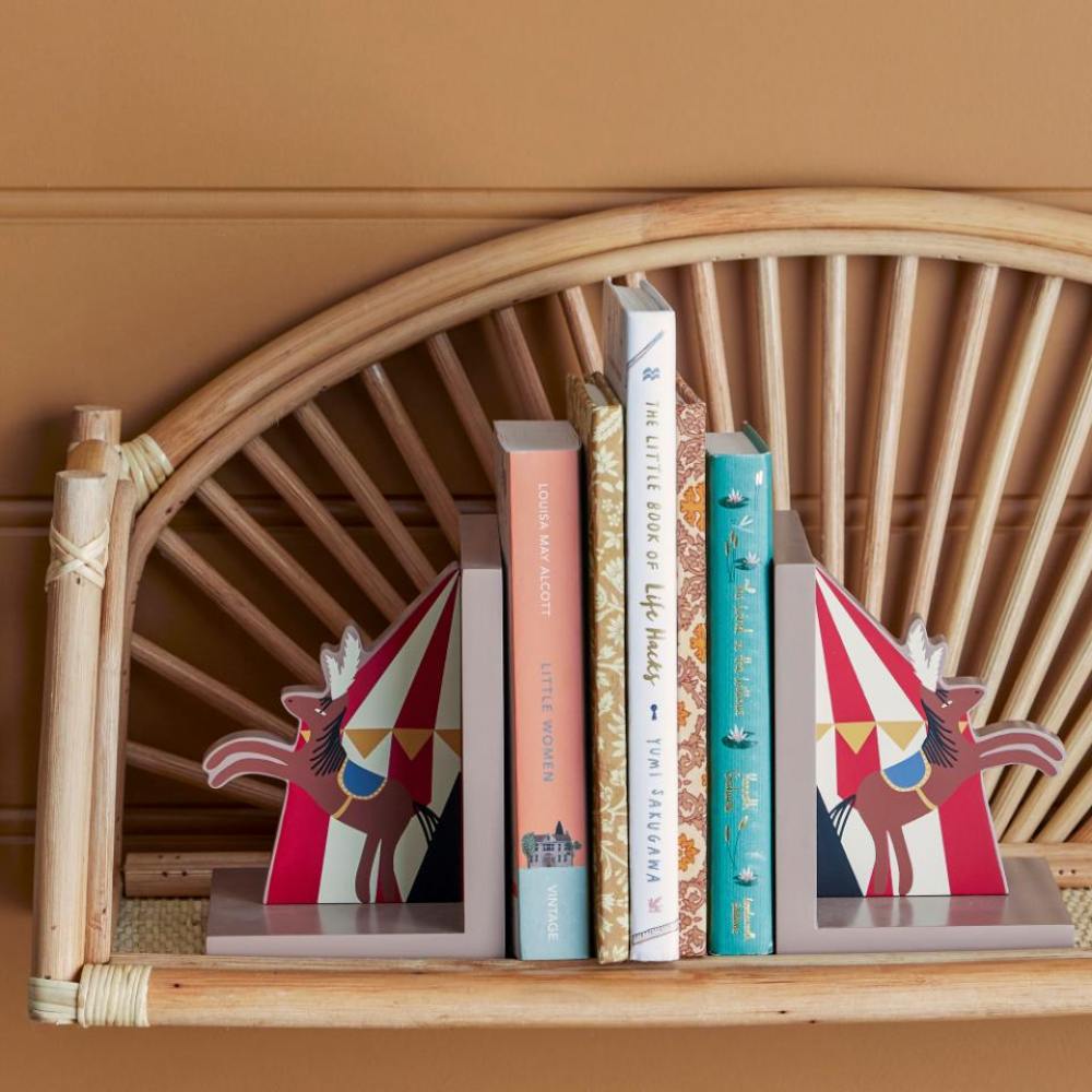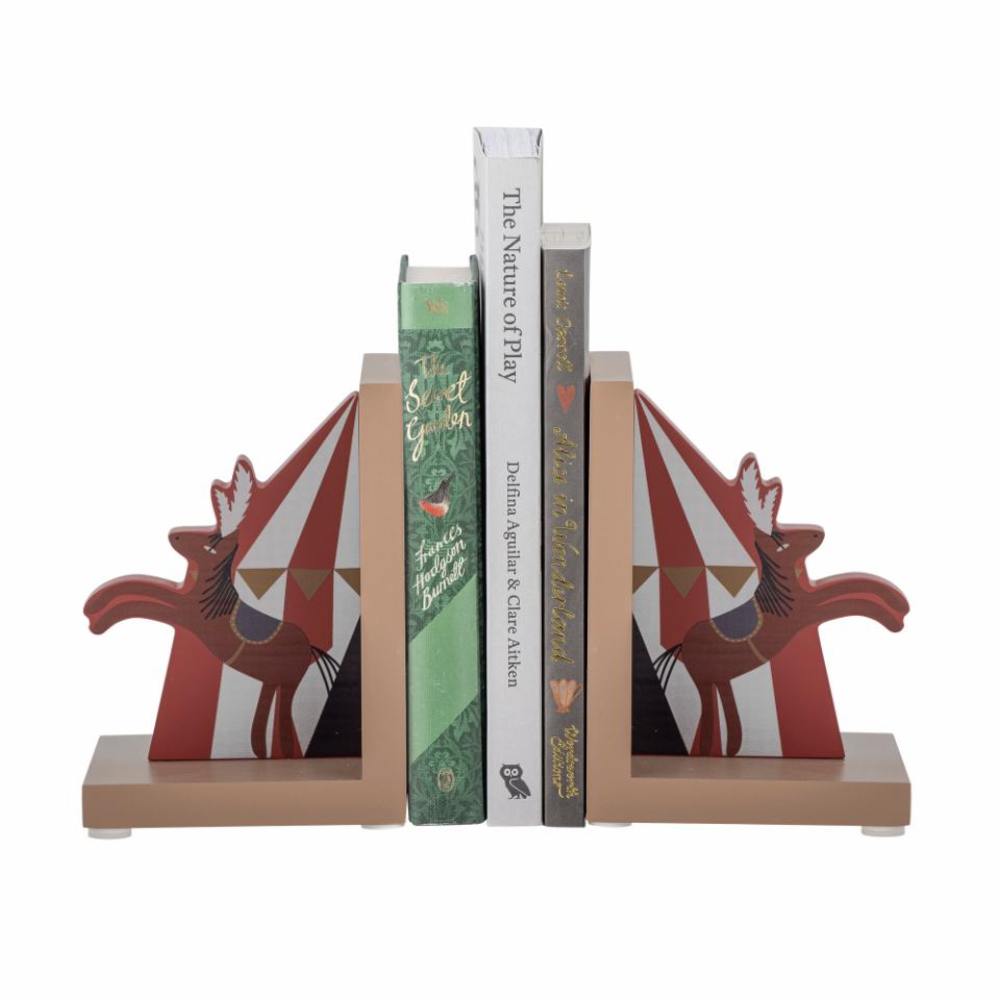 Подставки для книг "Цирк Santos" от Bloomingville MINI — это не только функциональные, но и стильные аксессуары. В виде лошадок, они придают интерьеру интерес и уникальность. Глубокий красный цвет и изысканный дизайн идеально впишутся в детскую комнату или любую другую часть дома. Подставки помогут держать книги в порядке и добавят веселья и уюта в помещение, привлекая внимание гостей и создавая атмосферу цирковой магии.