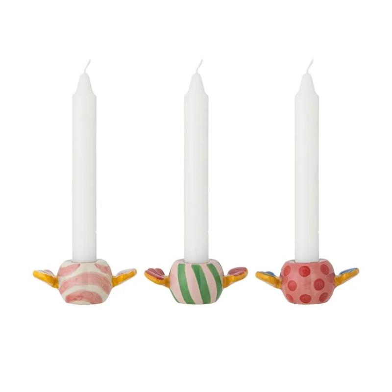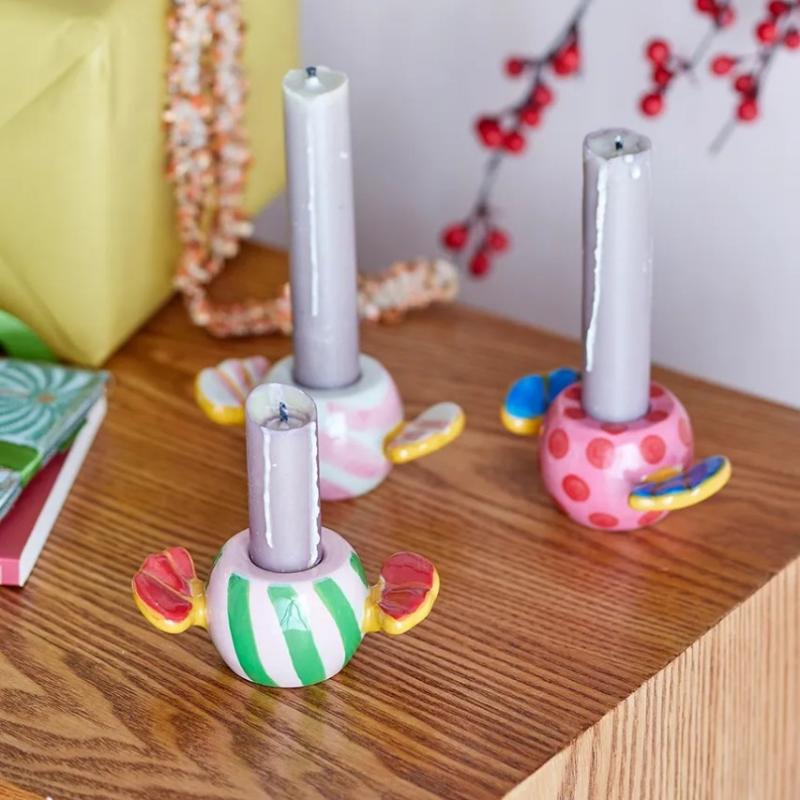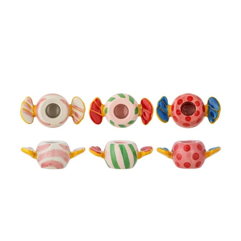 Три керамических подсвечника с узорами из конфет и леденцов. Розово-белая роспись вручную делает каждый экземпляр уникальным. Разная высота создаёт визуальную динамику в композиции. Керамогранит прочен и безопасен для использования со свечами. Сладкая серия Caramella добавляет рождественскому декору нотку детской радости без излишней сентиментальности.