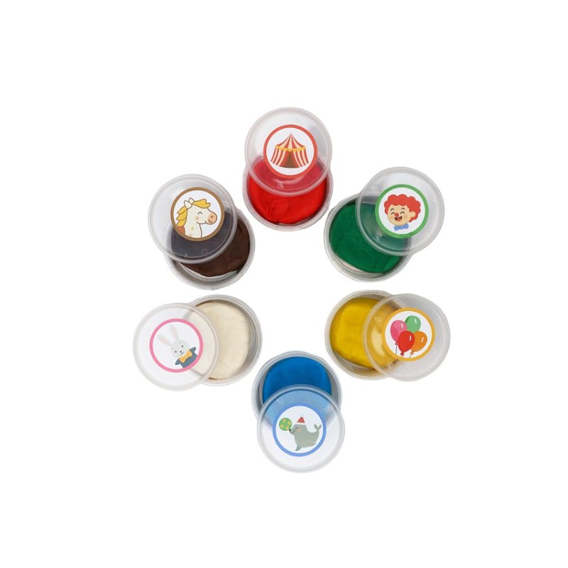 6 банок теста для лепки оттенки: Коричневый, красный, жёлтый, зелёный, синий, белый, 5 формочек из пищевого пластика, 1 силиконовая скалка с деревянными ручками