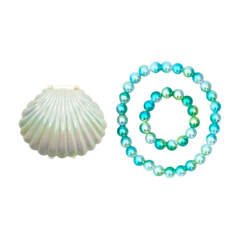Дополнительная информация: в наборе перламутровые браслет и бусы на резинке, а так же коробочка для хранения в виде жемчужной ракушки.