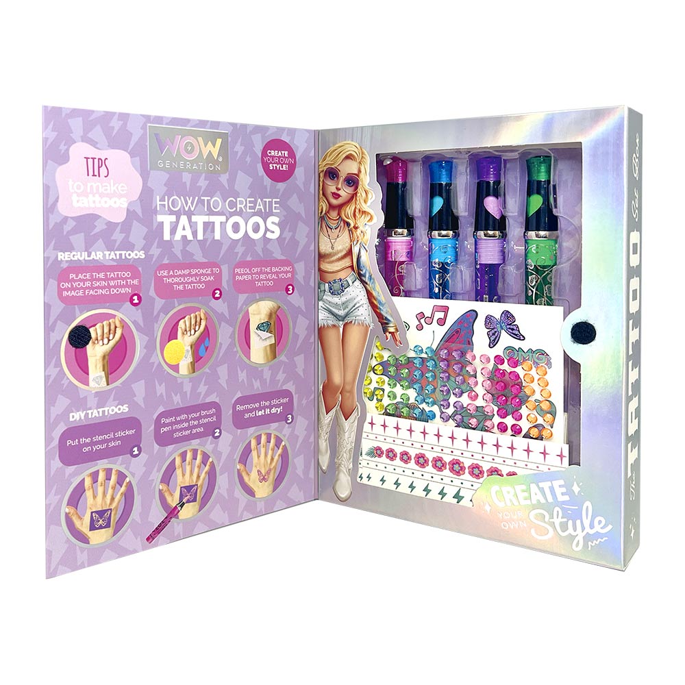 Набор содержит безопасные материалы для нанесения временных татуировок с разнообразными трафаретами и специальные гипоаллергенные чернила. Легко наносится и смывается за 1-2 дня, позволяя менять рисунки так часто, как хочется. Идеально подходит для детских праздников, тематических вечеринок или простых игр в домашних условиях.