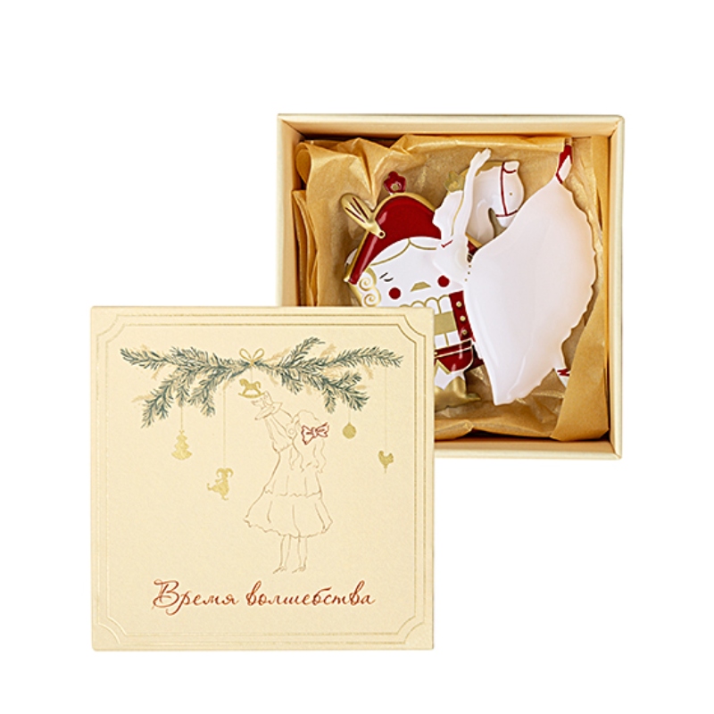 Самая прекрасная сказка о зимних праздниках оживает с новым набором елочных игрушек. Щелкунчик в нарядном красном мундире, воздушная балерина и детская лошадка-качалка выполнены из металла, покрыты прочной эмалью и расписаны вручную. Их так легко повесить на елку или гирлянду, украсить ими новогодний букет. А когда пройдут праздники — сложить в винтажную коробку, чтобы сохранить память о семейных вечерах до следующей зимы.