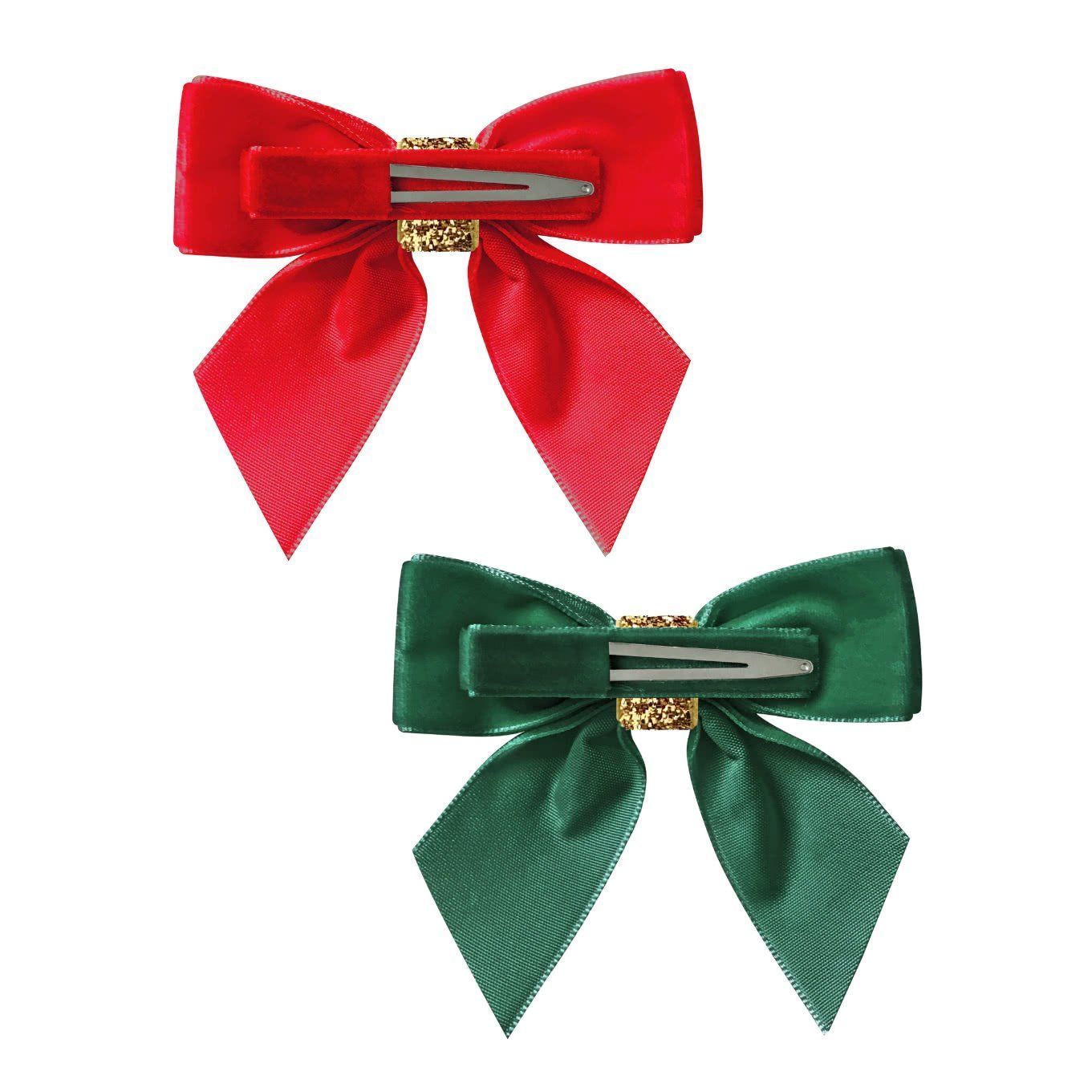 Набор включает: 1 заколка-зажим "Bow", средняя, зеленая с золотистым; 1 заколка-зажим "Bow", средняя, скарлет с золотистым, коллекция "Velvet Christmas".
