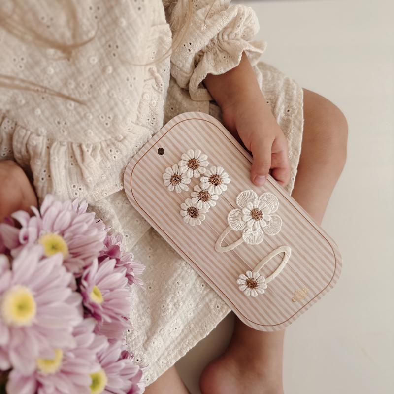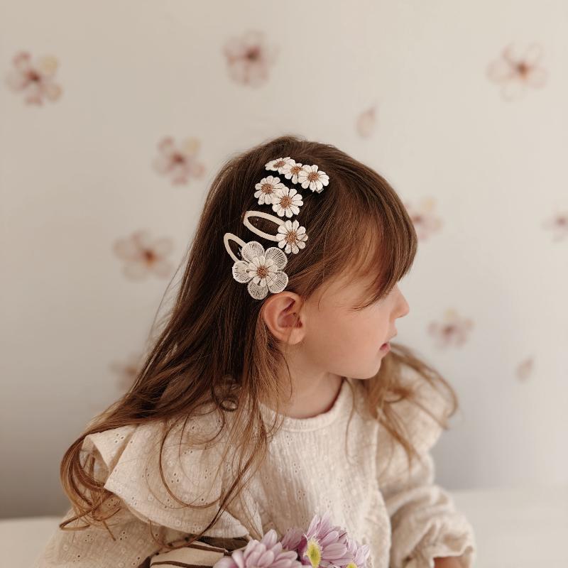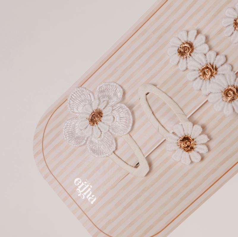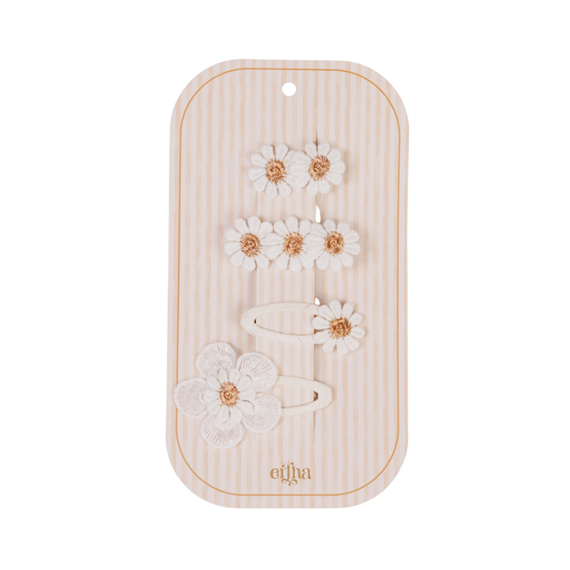 Дополнительная информация: очаровательный набор из 4 заколок для волос, вдохновленный вечным очарованием маргариток. В наборе, выполненном в винтажном стиле и украшенном вышитыми цветочными деталями, нейтральные тона сочетаются с утонченным колоритом. Легкие и удобные. Вышитые ромашки. Идеально подходит для повседневного использования или особых случаев.