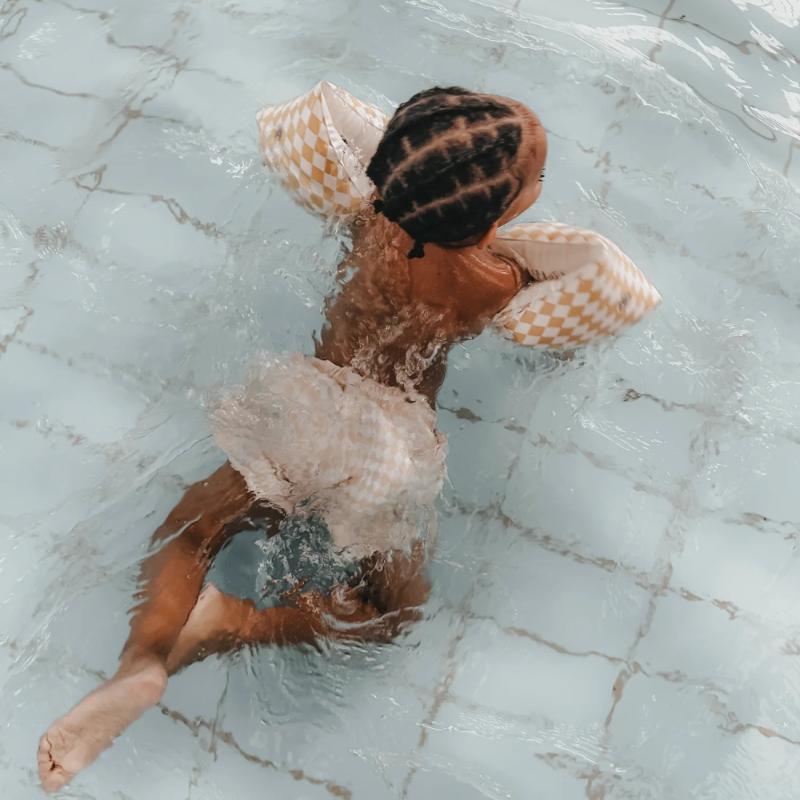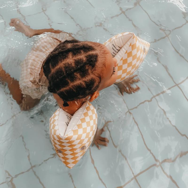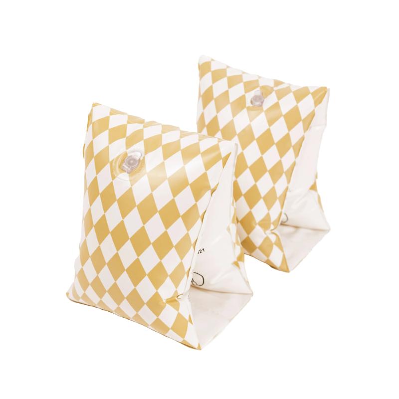 Практичные нарукавники с наполнителем для первых уроков плавания. Не надуваются — просто наденьте на руки ребёнка. Создают необходимую плавучесть для обучения. Плотно сидят на предплечьях, не спадают. Лёгкая конструкция комфортна для детей. Нежный узор в ромбик смотрится элегантно. Внимание: используйте только под присмотром, это вспомогательный аксессуар, не спасательное оборудование.