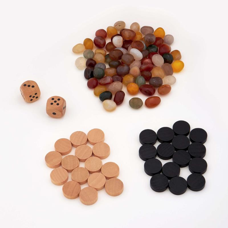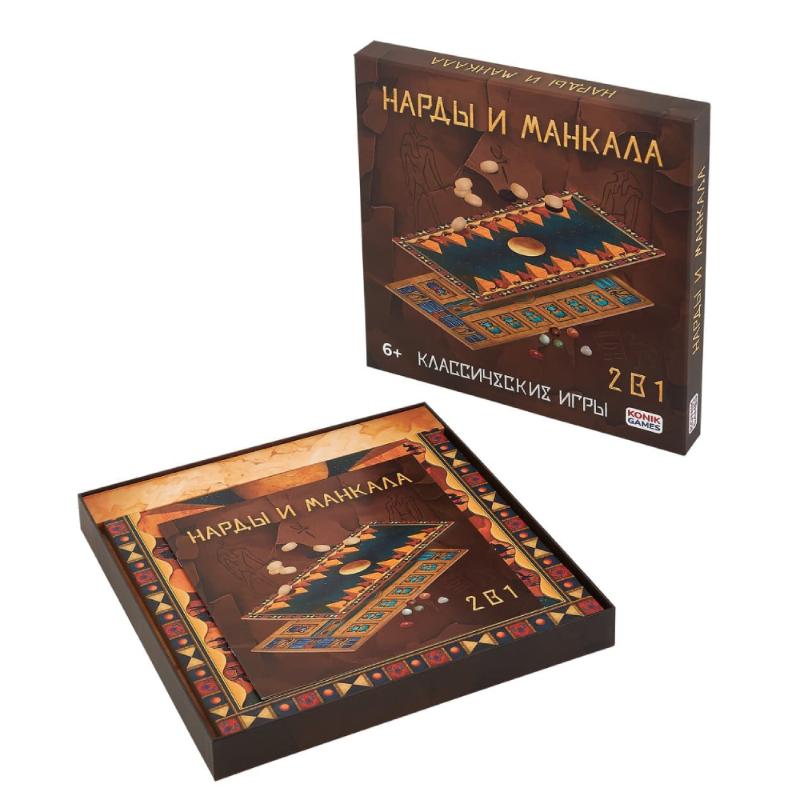 Нарды — игра на везение и расчёт, манкала — древняя стратегия с камешками и лунками. Оба варианта требуют внимания, но при этом остаются доступными. Доска двусторонняя, фишки и камни в комплекте. Нарды затягивают партиями на полчаса, манкала играется быстрее. Набор понравится тем, кто ценит традиционные игры без электроники и излишних правил — просто ты, соперник и доска между вами.