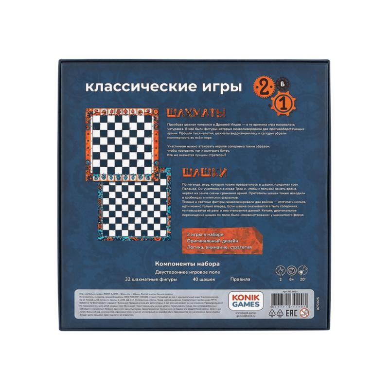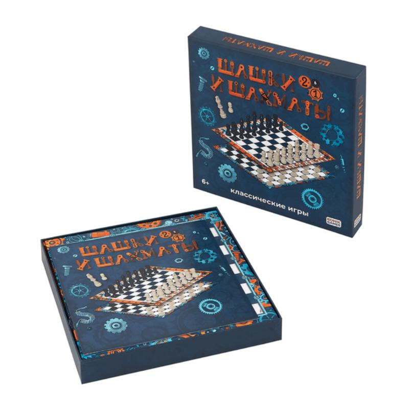 Классика настольных игр в одном наборе. Доска двусторонняя, фигуры удобные, правила — те же, что знали наши бабушки и дедушки. Шахматы развивают стратегическое мышление, шашки — тактическое. Можно научить ребёнка обеим играм или освежить собственные навыки. Набор компактный, качество достойное, цена адекватная. Никаких лишних наворотов — просто два вечных соперника на одной доске.