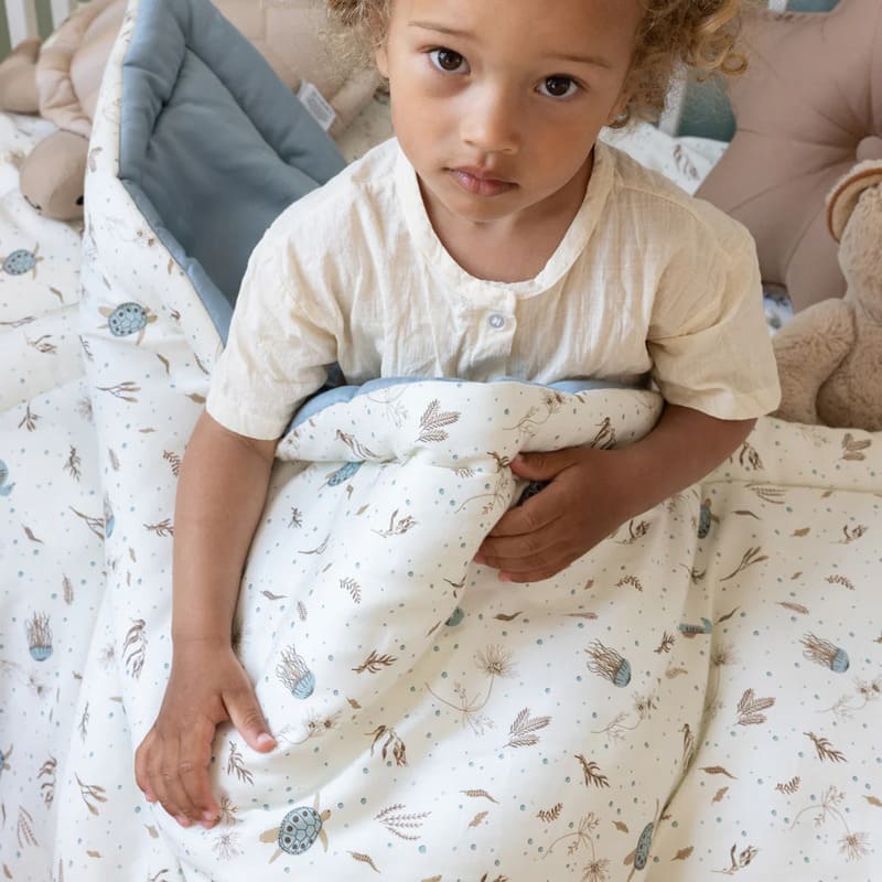 Мягкое и уютное одеяло из коллекции Sea Garden привлекает внимание нежным морским дизайном, вдохновлённым природой океана. Размер 120 на 90 см отлично подходит для малыша, обеспечивая тепло и комфорт во время сна или отдыха. Ткань приятна на ощупь и обладает хорошей воздухопроницаемостью, что помогает поддерживать оптимальную температуру. Этот аксессуар станет стильным и функциональным дополнением детской комнаты.