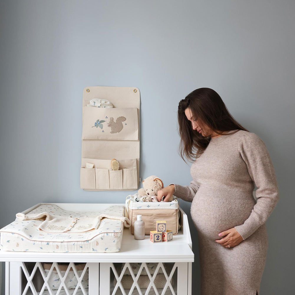 Многофункциональный органайзер с отделениями разного размера. Принт с черникой на фоне цвета топлёного молока выглядит свежо и современно. Плотный материал держит форму, конструкция устойчивая. Можно использовать для хранения подгузников, косметики, игрушек или детской одежды. Органайзер впишется на комод, полку или можно закрепить на стене. Практичное решение для тех, кто ценит порядок и хочет, чтобы функциональные вещи выглядели красиво.