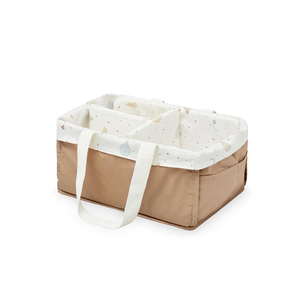 Органайзер из мягкой стёганой ткани сочетает в себе функциональность и эстетику. В нём удобно хранить все необходимые принадлежности для ухода за ребёнком: от косметики до подгузников. Внутри — несколько кармашков для упорядоченного размещения мелочей. Ткань украшена деликатным рисунком из коллекции Dreamland, а оттенки молока и карамели делают изделие универсальным и тёплым по настроению.