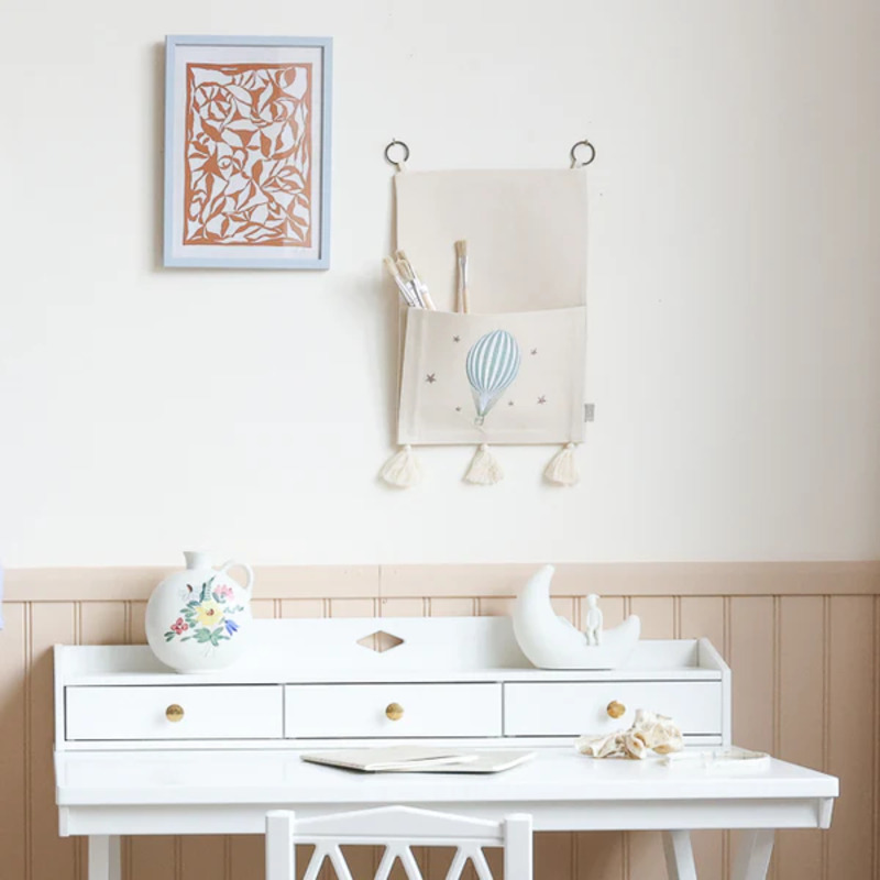 Подвесной органайзер — функциональное и элегантное решение для хранения мелочей. В нескольких кармашках удобно разместятся подгузники, кремы, салфетки и игрушки. Молочный оттенок и нежный принт добавляют интерьеру мягкости и уюта. Органайзер легко крепится на кроватку, пеленальный столик или стену, всегда оставаясь под рукой. Он помогает организовать пространство и делает каждодневный уход за ребёнком ещё более удобным.