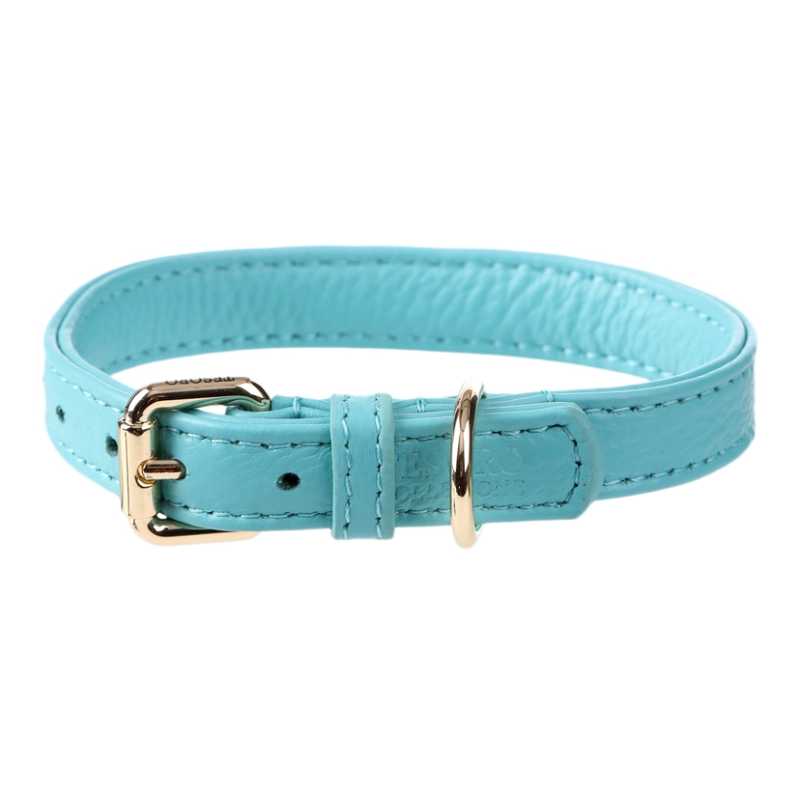 Этот ярко-бирюзовый ошейник от Tesoro – не только стильный, но и очень практичный аксессуар. Он отлично подойдет собакам, кошкам и другим домашним любимцам. Изготовленный из качественной натуральной кожи, он очень гибкий, мягкий и не будет натирать питомцу или создавать иной дискомфорт. Ошейник можно регулировать по длине, а в качестве застежки у него предусмотрена удобная металлическая пряжка с прочным сварным кольцом, на которое можно повесить бирку с данными животного и его хозяина.
