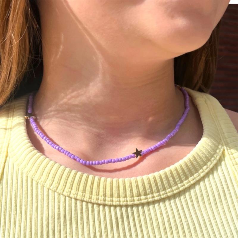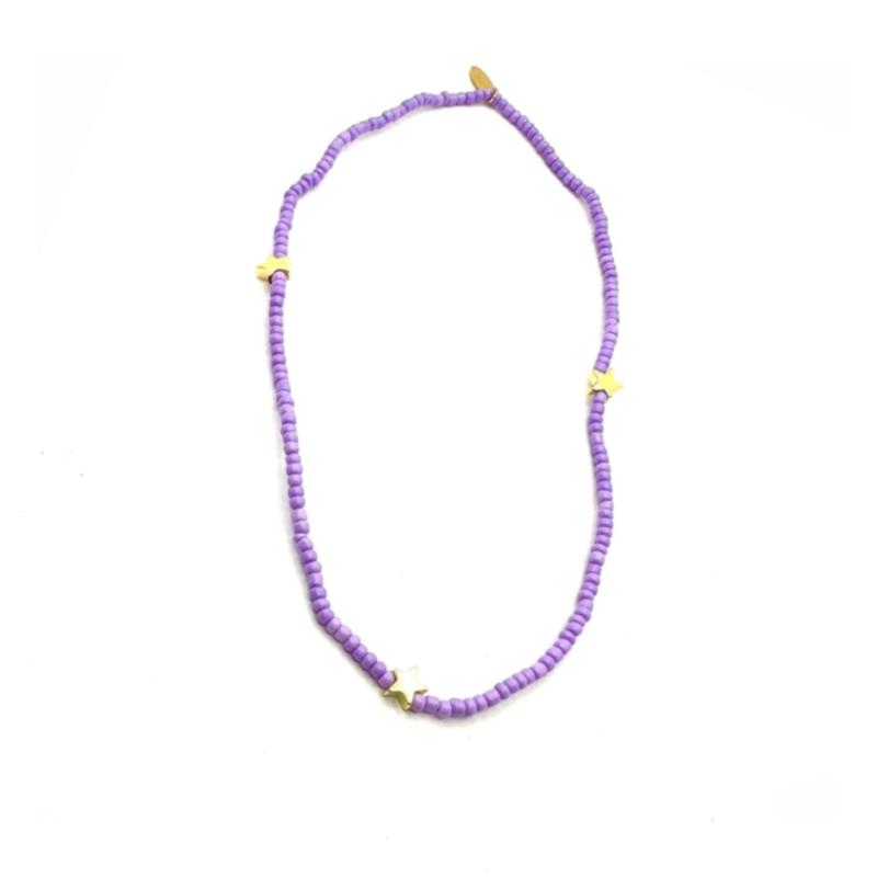 Фиолетовое ожерелье на резинке с бусинами и звездами. Тянется, легко надевается самостоятельно. Подходит детям разного возраста благодаря эластичности. Можно использовать для праздников или повседневных образов. Бусины безопасные, гладкие. Звездочки добавляют магии украшению. Красивый фиолетовый цвет привлекает внимание. Хорошо сочетается с браслетом из этой серии. Прочное, долго сохраняет первоначальный вид. Отличный подарок для юных мечтательниц.