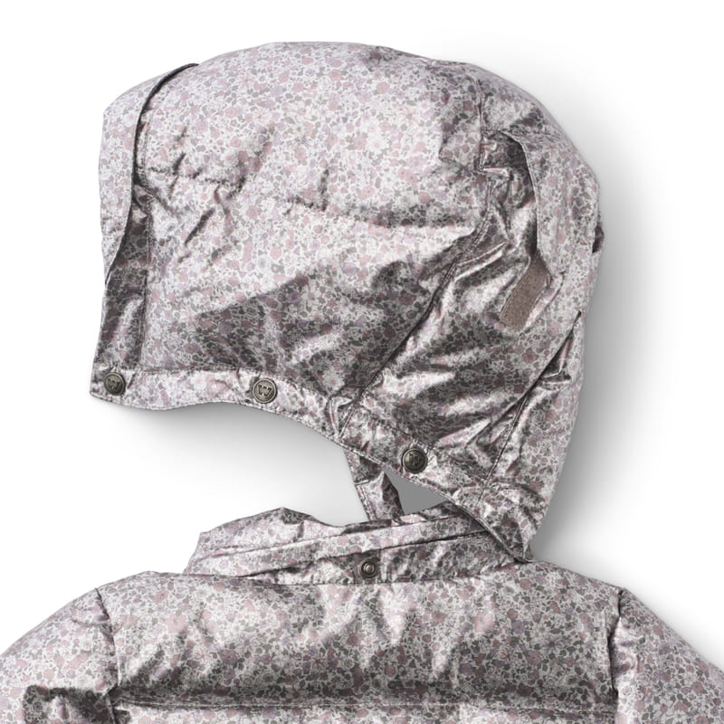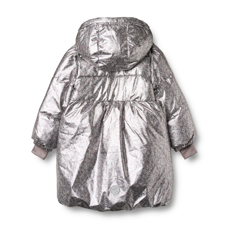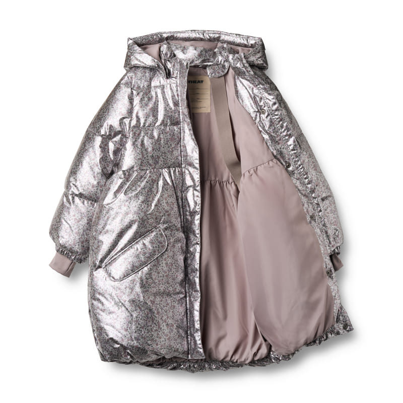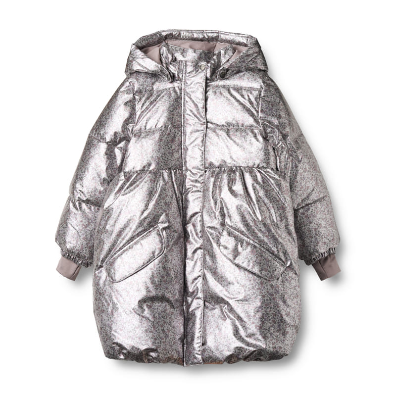 Удлинённая модель с принтом, напоминающим лунную поляну, укутывает в тепло и уют. Пальто хорошо сохраняет тепло благодаря плотной подкладке, а капюшон с высоким воротом надёжно закрывает от ветра. Принт с цветами на серебристом фоне добавляет образу сказочности. Прямой крой, удлинённая спинка и внутренние резинки на рукавах делают пальто практичным и удобным для зимних приключений.