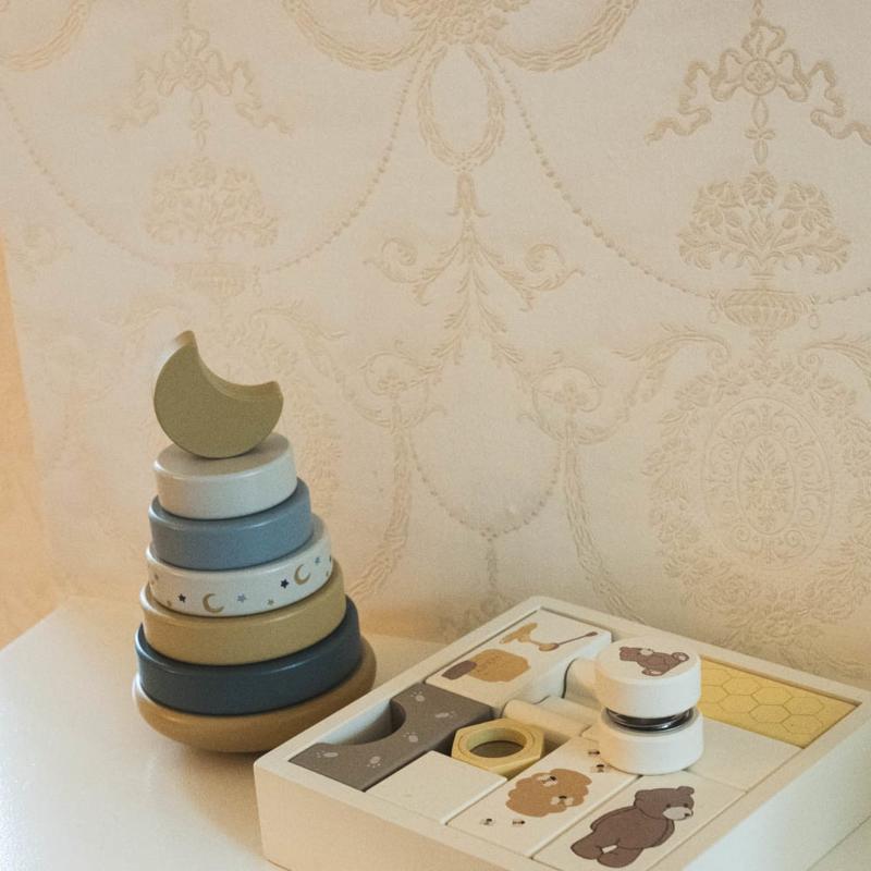 Спокойный микс оттенков создает ощущение простоты и уюта, а деревянные кольца легко ложатся в руки. Пирамидка приглашает пробовать снова и снова, наблюдая, как каждый элемент становится частью целого. Она аккуратно развивает внимание и первые навыки координации, оставаясь частью повседневных игр.