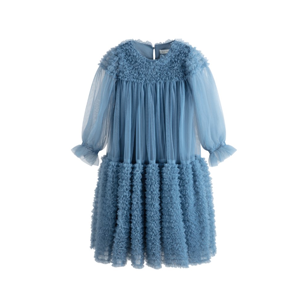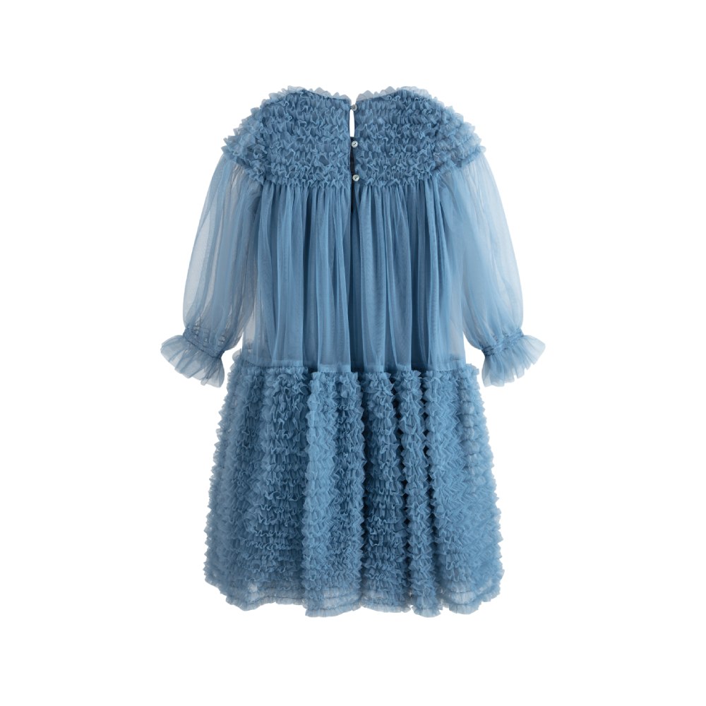 Платье в мягком голубом оттенке напоминает о летнем небе и свежем ветре. Свободный силуэт дарит лёгкость движений, а спокойный цвет делает его универсальным выбором на каждый день. Эта модель подойдёт и для прогулок, и для особых моментов, создавая образ, полный чистоты и нежности.