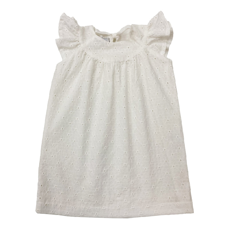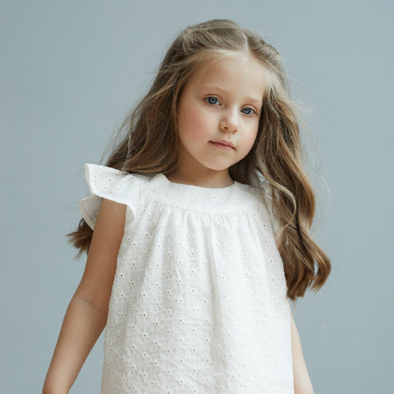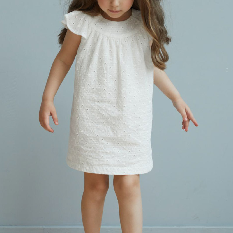 Нежное белое платье из ткани с шитьём с декоративными крылышками на кокетке — воплощение детской невинности и праздника. Лёгкий материал и удобный крой делают модель комфортной для активных игр и торжеств. Белый цвет придаёт образу чистоту и свежесть, позволяя создавать нежные комплекты с разными аксессуарами. Эта модель станет прекрасным выбором для фотосессий, праздников и прогулок в тёплую погоду.