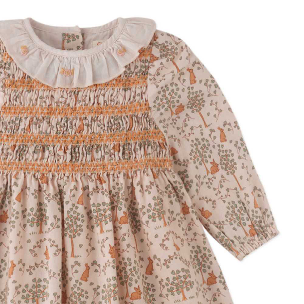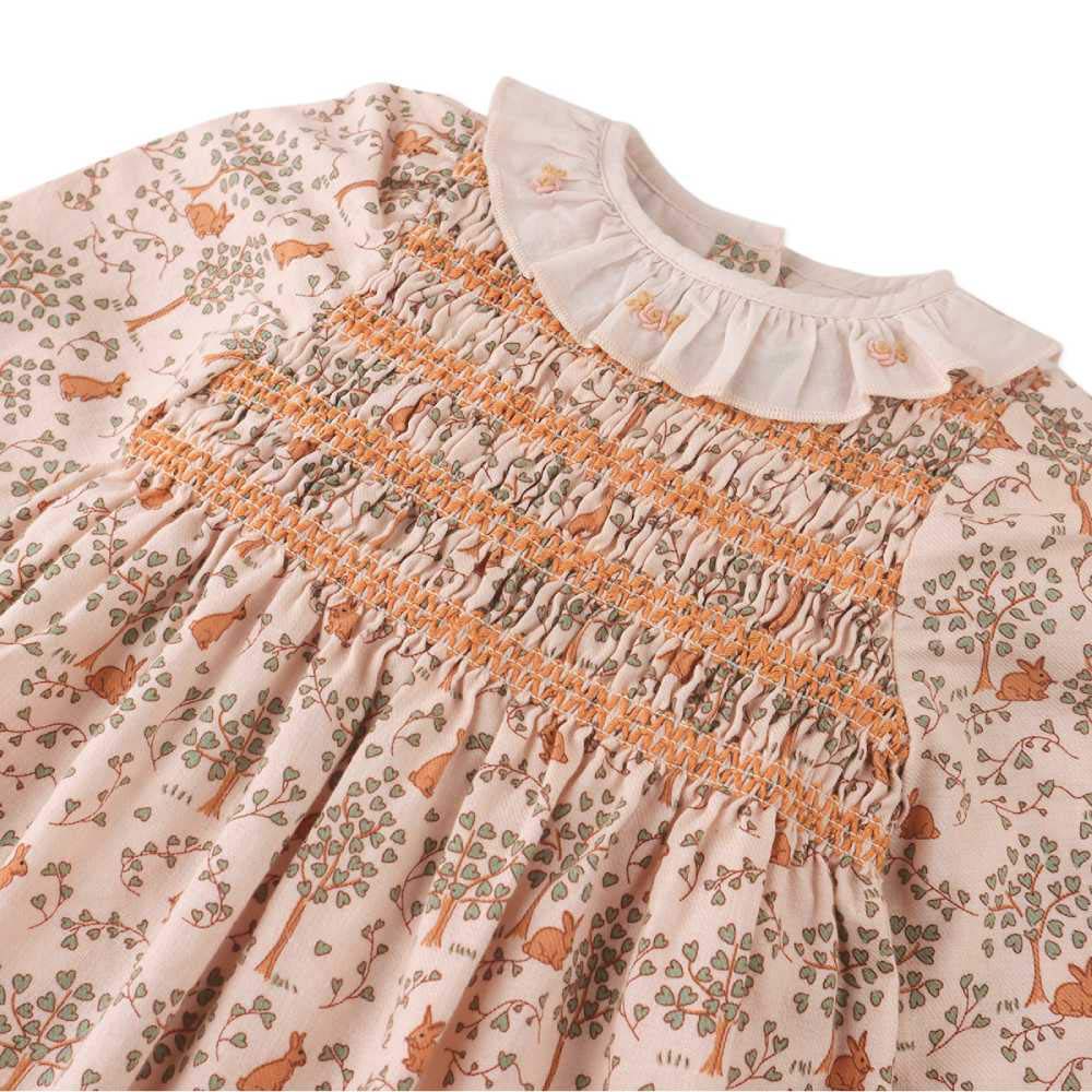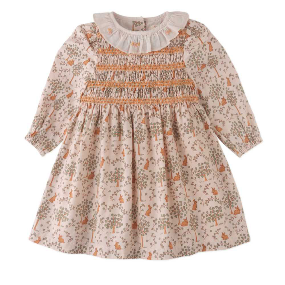 Нежное кремовое платье с очаровательными зайчиками на лужайке — мечта каждой малышки! Мягкая ткань бережно обнимает нежную кожу, а длинный рукав согревает в прохладную погоду. Принт Bunny Meadows с милыми кроликами превращает платье в маленькую сказку. Идеально для повседневных прогулок, визитов к бабушке или фотосессий. Trixie легко стирается и долго сохраняет форму. Ваша дочурка будет выглядеть как принцесса из детской книжки — трогательно, мило и очень уютно.