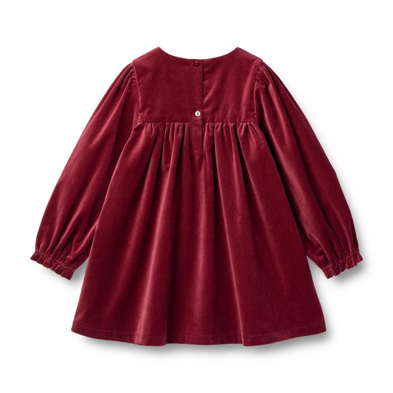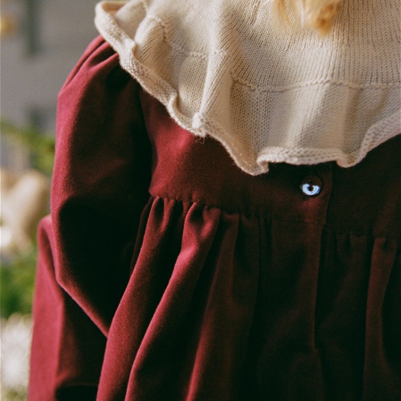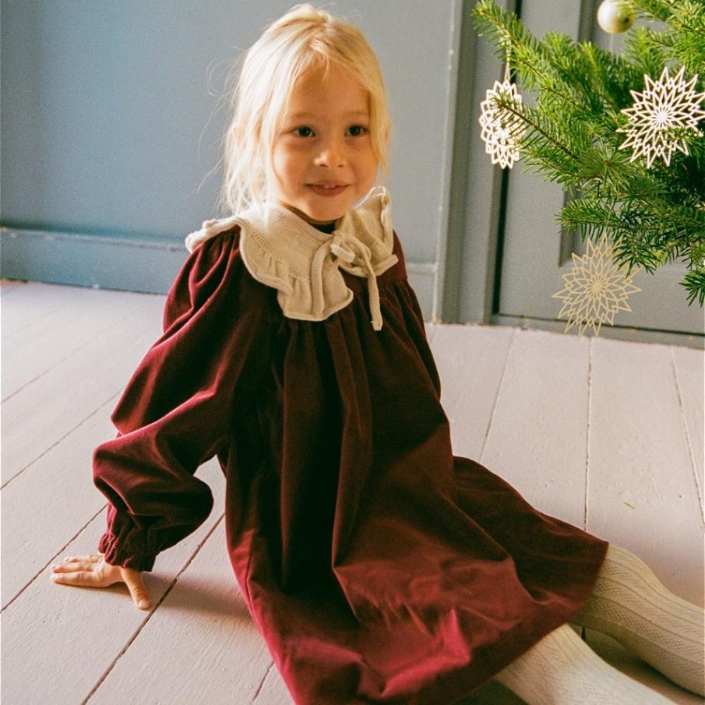 Элегантное платье насыщенного рубинового оттенка — простота, которая восхищает. Длинные рукава и закруглённый подол создают утончённый силуэт, а мягкий трикотаж из органического хлопка дарит комфорт. Подходит и для торжества, и для повседневных дней — особенно с белыми гольфами и лакированными туфельками. Красота без компромиссов.