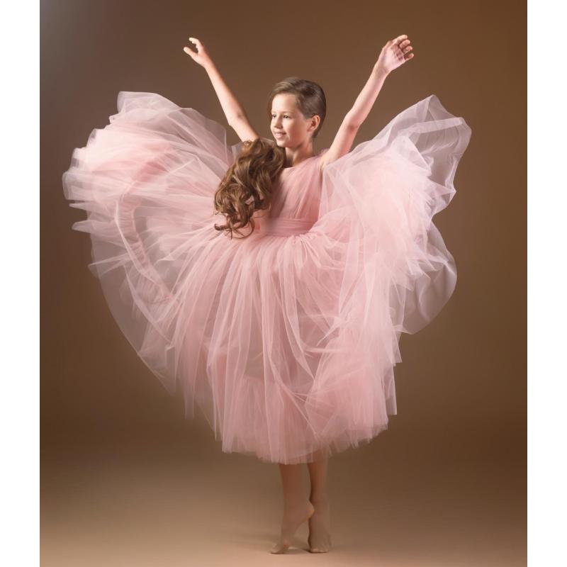 Aurora в пудровом оттенке — воплощение нежности без приторности. Огромное количество фатина создаёт объём, но не утяжеляет силуэт. Это платье для девочек, которые любят кружиться и чувствовать, как юбка взлетает облаком. Пудровый тон универсален: подходит и блондинкам, и темноволосым красавицам. Хлопковая основа обеспечивает комфорт, а воздушность образа заставляет забыть обо всём, кроме радости момента.