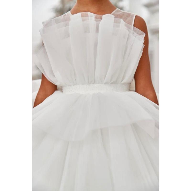 Белое мороженое в летний день — примерно такие ассоциации вызывает это платье. Ice Cream создано для тех, кто не боится чистоты и света. Многослойная конструкция напоминает порции десерта, уложенные с фантазией кондитера. Белый цвет в детском наряде — всегда смелое решение, но результат того стоит: образ получается свежим, торжественным и по-настоящему праздничным. Для важных событий, где нужно выглядеть безупречно.