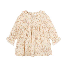 Маленькое платье от Wheat необычного розового оттенка согреет малышку в холодную погоду и поможет ей выглядеть элегантно и стильно. Модель выполнена в свободном крое из мягких органических нитей. Платье не мешает крохе бегать и познавать мир вокруг, не колется и не вызывает раздражения. Широкий круглый ворот украшен милыми оборками, придающими образу еще больше очарования, а на плече предусмотрена удобная застежка на пуговицах, благодаря которой маленькую непоседу будет легко переодеть.