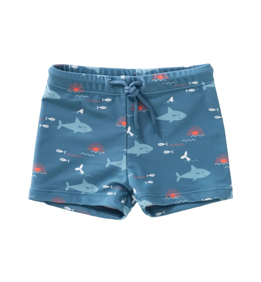 Эти плавки сочетают в себе функциональность и забавный морской принт, который точно понравится детям. Ткань тянется и быстро сохнет, не сковывая движения в воде и на суше. Мягкая подкладка обеспечивает дополнительный комфорт, а плотный пояс с эластичной вставкой гарантирует хорошую посадку. Отлично подойдут для пляжа, бассейна и любых летних водных игр. Голубой оттенок легко сочетается с другими вещами из пляжной коллекции.