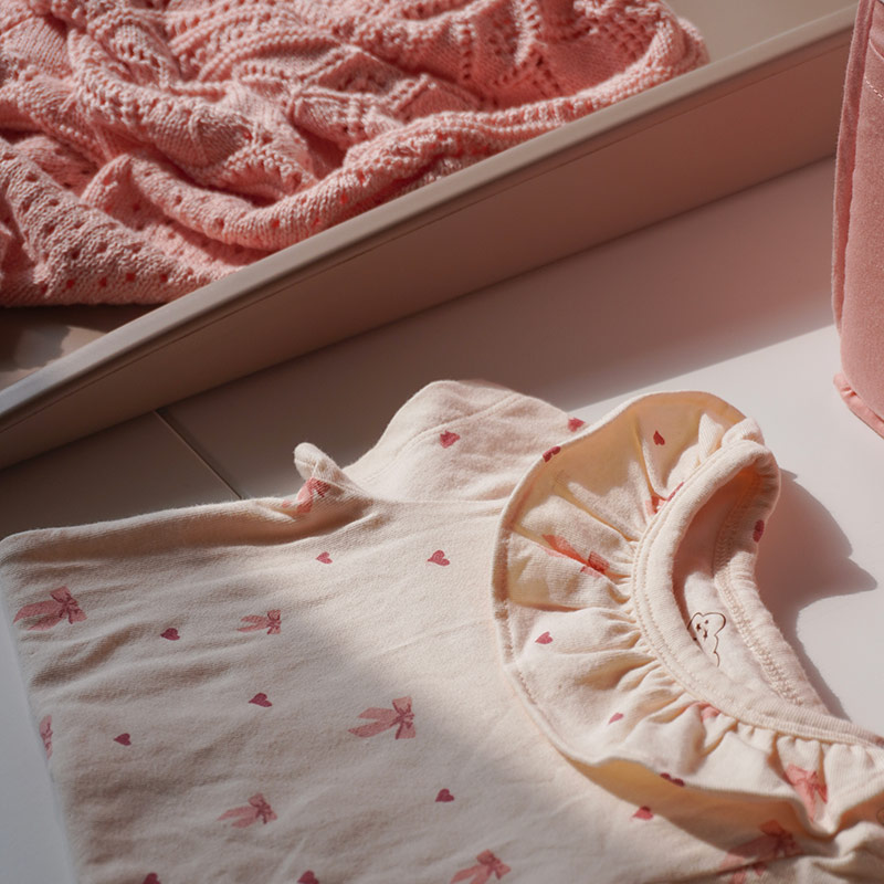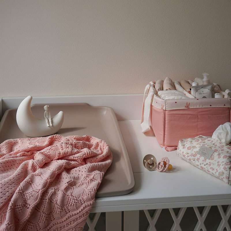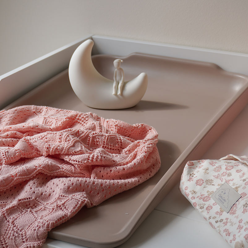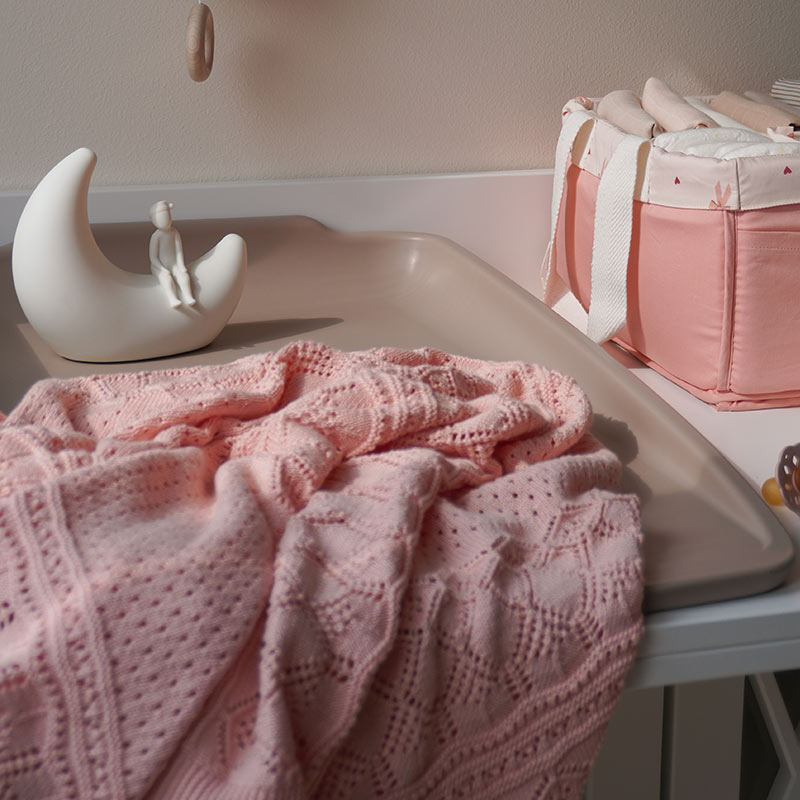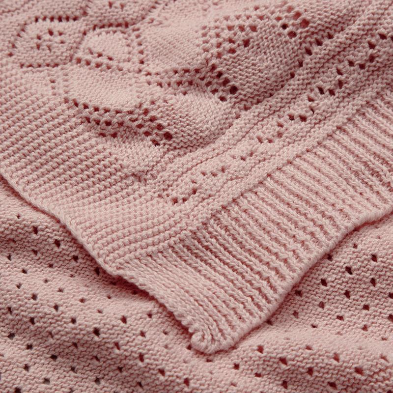 Фактурная вязка пуантель создаёт лёгкую воздушную структуру, которая отлично регулирует температуру. Этот плед можно использовать в кроватке, коляске или просто завернуть в него малыша после купания. Оттенок сорбет — что-то среднее между персиковым и пудровым — выглядит свежо и не банально. Органический хлопок становится мягче с каждой стиркой, а качество вязки гарантирует, что плед прослужит не одному поколению детей.