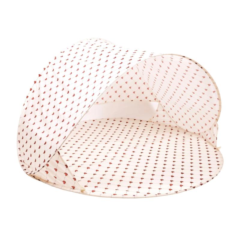 Автоматическая палатка с защитой UV50+ для пляжного отдыха. Раскладывается за секунды благодаря системе Pop Up. Создаёт тень и защищает от прямых солнечных лучей. Просторная, вместит детей и пляжные принадлежности. Вентиляционные отверстия обеспечивают циркуляцию воздуха. Легко складывается обратно, инструкция на QR-коде. Романтичный принт с сердечками нравится детям. Незаменимая вещь для жарких пляжных дней.