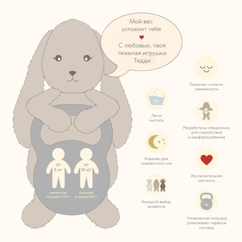 Дополнительная информация: вес игрушки - 800 г, что делает игрушку специально немного тяжелой для дополнительного комфорта. Наполнена полипропиленовыми шариками и рекомендуется для детей весом от 10 кг и выше. Игрушка подходит для детей, которые могут игрушку держать самостоятельно.