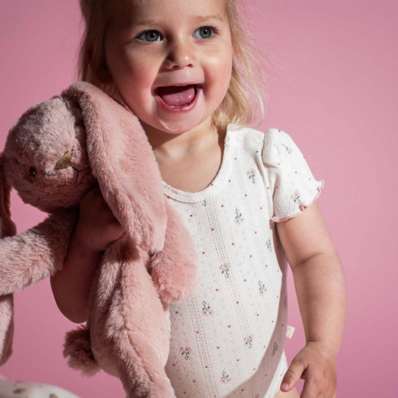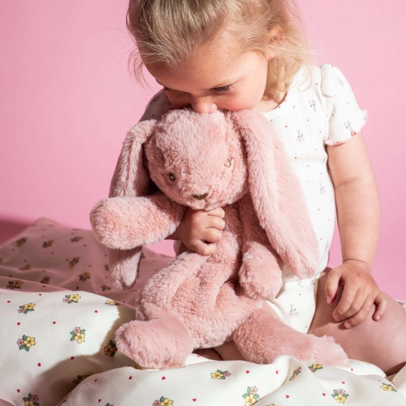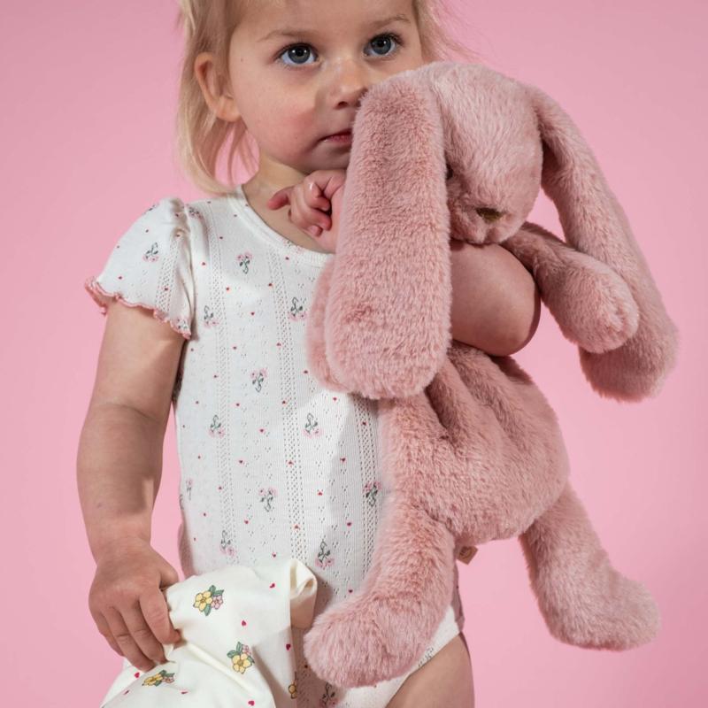 Нежный оттенок добавляет тепла и делает образ особенно мягким и уютным. Длинные ушки и легкая форма располагают к спокойной игре и объятиям. Игрушка быстро становится частью повседневных привычек: ее берут с собой, укладывают рядом и возвращаются к ней в моменты, когда важно сохранить ощущение комфорта.