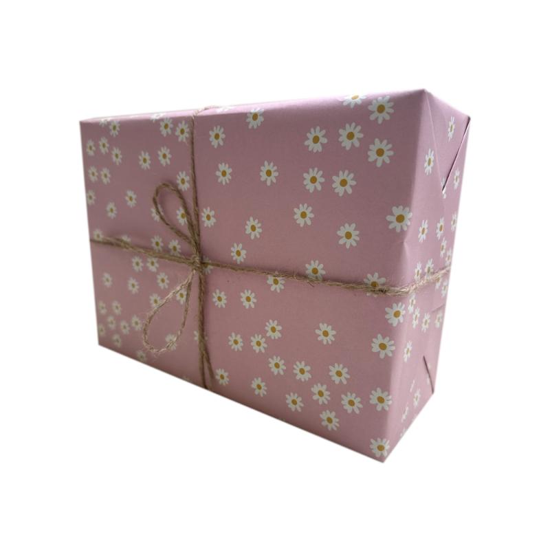Подарочная упаковка заказа «Поле ромашек» в розовом исполнении излучает мягкость и романтику. Её тёплый цвет и цветочный узор делают упаковку по-настоящему праздничной и привлекательной. Этот вариант идеально сочетается с подарками для тех, кому хочется подарить особенное чувство заботы и внимания. Дополнительный декор не нужен — такая упаковка сама по себе создаёт впечатление изящества и нежного настроения.