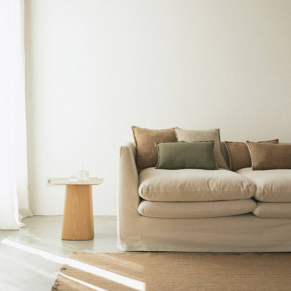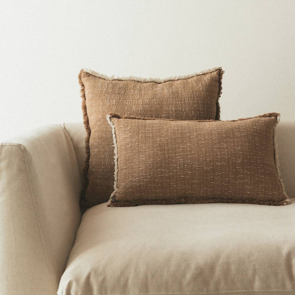 Охра здесь — не кричащая, а тёплая и приглушённая, как солнечный свет сквозь льняную штору. Этнический орнамент на таком фоне смотрится живо и при этом спокойно. Подушка соткана вручную без электричества, в комплекте наполнитель. Легко впишется в интерьер, где уже есть бежевый, терракотовый или зелёный — она умеет дружить с разными цветами.