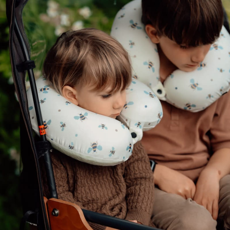 Подушка-подголовник в нежных молочных оттенках украшена милым принтом с пчёлками, создавая уют и спокойствие в дороге. Благодаря анатомической форме она надежно поддерживает шею, снижая напряжение во время путешествий и помогая лучше отдохнуть. Компактная и легкая, удобна в переноске и хранении. Чехол съемный, из мягкого материала, его легко стирать, что гарантирует гигиену и долгий срок службы.