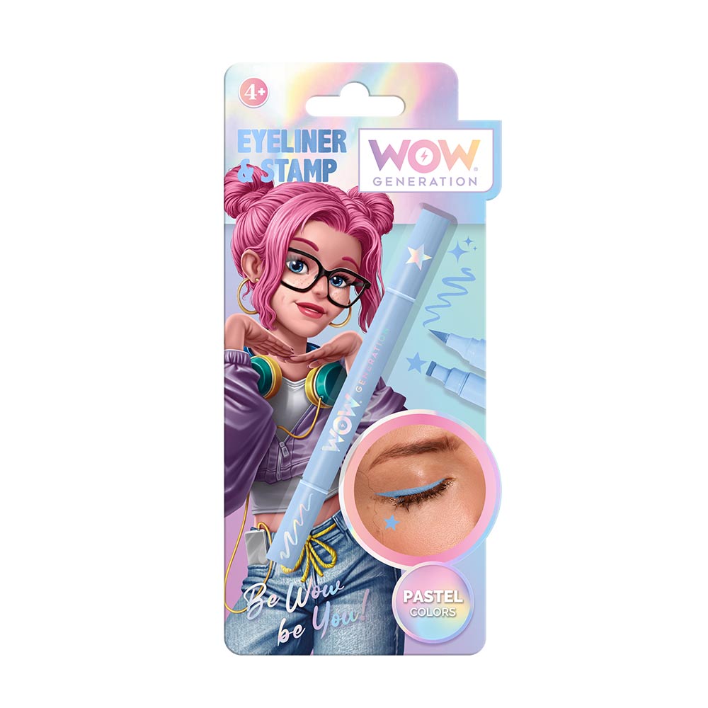 Подводка для глаз WOW — универсальная подводка для глаз с двумя типами аппликаторов.С одной стороны — тонкая кисть для рисования четких стрелок, с другой — удобный штамп для создания идеальных узоров. Нежный голубой оттенок с мягким сиянием подчеркнет индивидуальность и добавит образу морской свежести. Легкая формула обеспечивает комфортное нанесение и простое смывание. Идеально для создания праздничных образов, экспериментов с макияжем и веселых игр с друзьями.