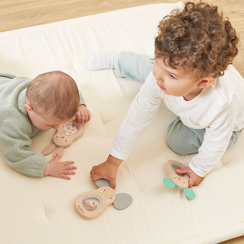 Тёплая деревянная погремушка в форме милого слонёнка подарит малышу мягкое звучание и первые открытия. Внутри спрятаны шелестящие гранулы, которые перекатываются при каждом движении, развивая слух и внимание. Удобная форма и приятные на ощупь ушки делают игрушку идеальной для маленьких пальчиков.