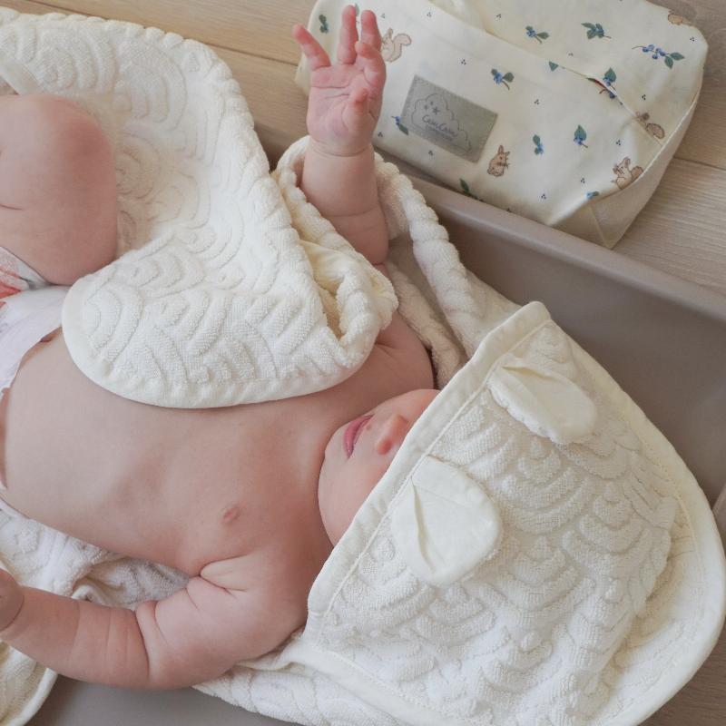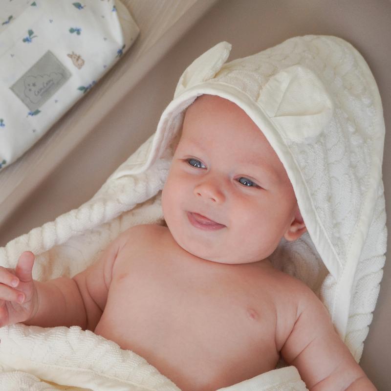 Капюшон защищает голову малыша от сквозняков после купания, а мягкая махровая ткань быстро впитывает влагу. Белый цвет — практичное решение, которое легко стирается и не теряет вид. Органический хлопок бережно относится к нежной коже новорождённого. Размер полотенца достаточный, чтобы полностью завернуть ребёнка и создать ощущение уюта. Простота формы и качество материала — всё, что нужно для комфорта после водных процедур.