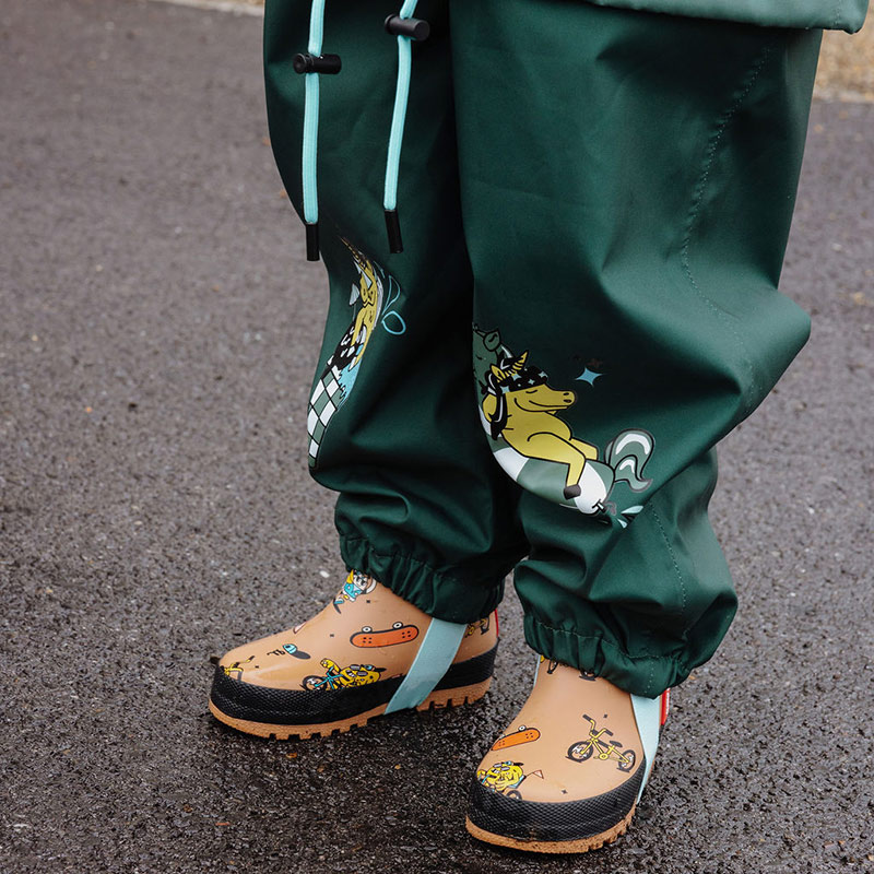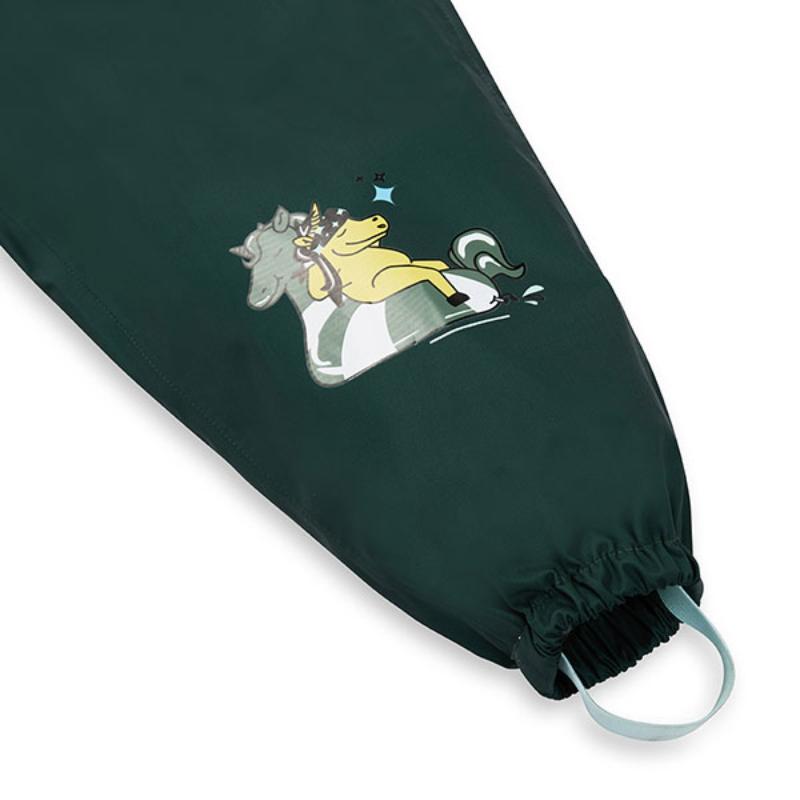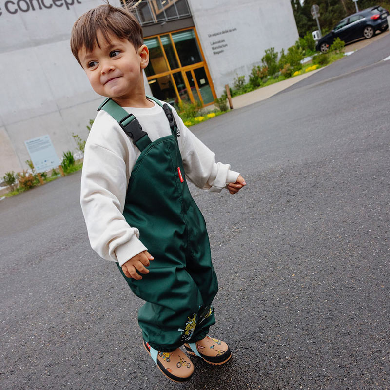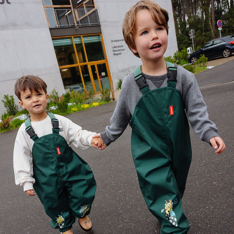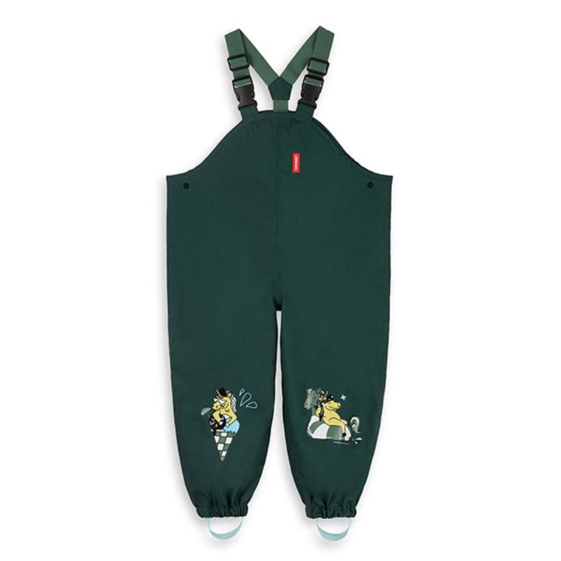 Тёмно-зелёный полукомбинезон дополняет куртку той же серии. Водонепроницаемая ткань выдерживает активные игры под дождём. Регулируемые бретели растут вместе с ребёнком. Усиленные колени повышают износостойкость в местах наибольшей нагрузки. Боковые карманы вмещают небольшие предметы. Легко надевается поверх обычной одежды, защищая её от грязи и влаги.