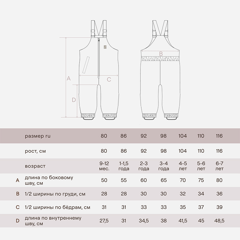 Удобный и надёжный, он станет основой зимнего гардероба. Лёгкий цвет смотрится стильно, а продуманный крой даёт свободу движений. В нём ребёнок может кататься с горки, бегать по снегу и радоваться каждому дню. Полукомбинезон сохраняет тепло и защищает от влаги, превращая прогулки в удовольствие.