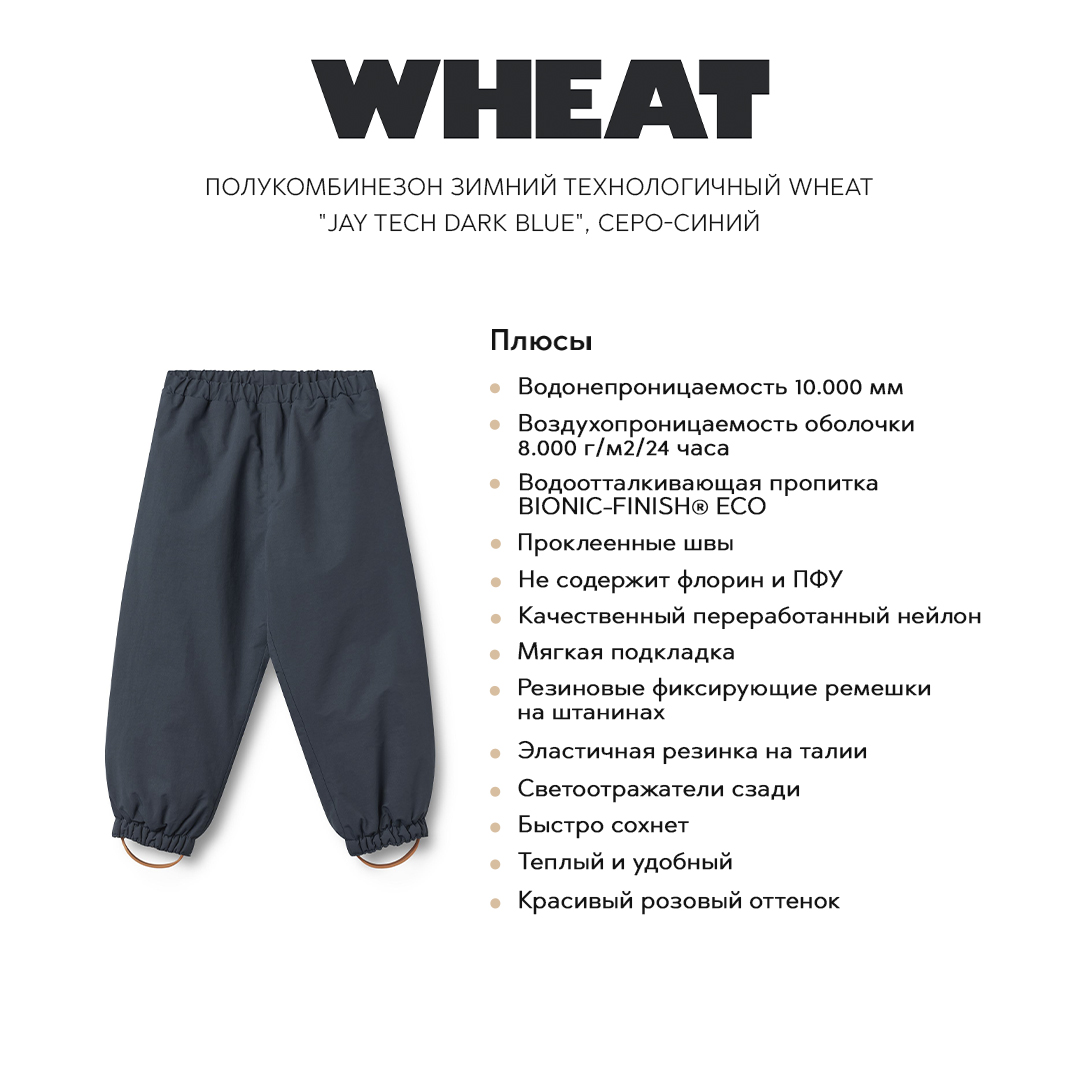 Дополнительная информация: полукомбинезон зимний с резиновыми фиксирующими ремешками на ступнях, с мягкой подкладкой и эластичной резинкой на талии. Светоотражатели. Проклеенные швы. Водонепроницаемость 10.000 мм. Воздухопроницаемость оболочки 8.000 г/м2/24 часа. Износостойкость: 50.000 циклов. Не содержит флорин и ПФУ. Поверхность обработана покрытием BIONIC-FINISH® ECO, воздухопроницаемой и водоотталкивающей пропиткой. Данная технология помогает текстилю высыхать максимально быстро. Более того, она полностью воздухопроницаемая и защищает краски и ткань от изнашивания и выцветания. Пропитка никаким образом не влияет на внешний вид и тактильные характеристики ткани. OEKO-TEX® Standard 100. Дизайн разработан командой Wheat.