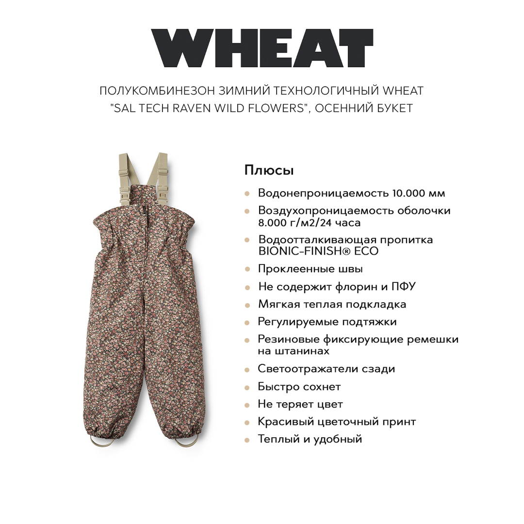 Дополнительная информация: полукомбинезон зимний с регулируемыми подтяжками и резиновыми фиксирующими ремешками на ступнях, с теплой подкладкой и застежкой-молнией. Светоотражатели. Проклеенные швы. Водонепроницаемость 10.000 мм. Воздухопроницаемость оболочки 8.000 г/м2/24 часа. Износостойкость: 50.000 циклов. Не содержит флорин и ПФУ. Поверхность обработана покрытием BIONIC-FINISH® ECO, воздухопроницаемой и водоотталкивающей пропиткой. Данная технология помогает текстилю высыхать максимально быстро. Более того, она полностью воздухопроницаемая и защищает краски и ткань от изнашивания и выцветания. Пропитка никаким образом не влияет на внешний вид и тактильные характеристики ткани. OEKO-TEX® Standard 100. GRS. Дизайн разработан командой Wheat.