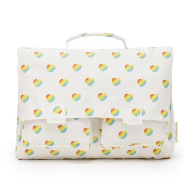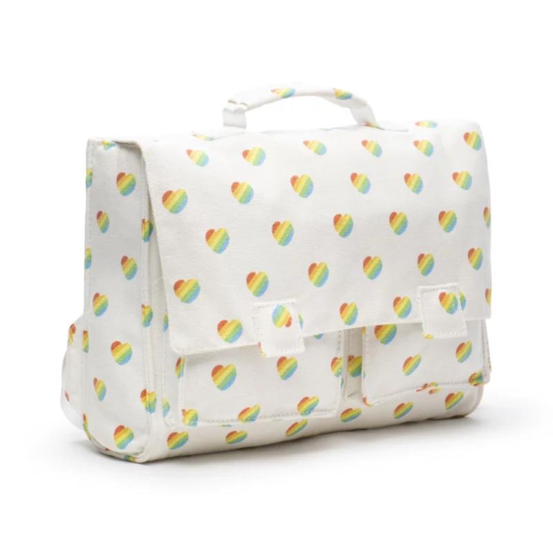 Школьный портфель с сердечками из прочного текстиля для учебников и тетрадей. Несколько отделений помогают организовать школьные принадлежности. Широкие лямки не врезаются в плечи даже при полной загрузке. Материал не промокает и легко чистится. Яркий дизайн выделяет среди стандартных школьных рюкзаков. Это надежный спутник на весь учебный год, сделанный с заботой об экологии.
