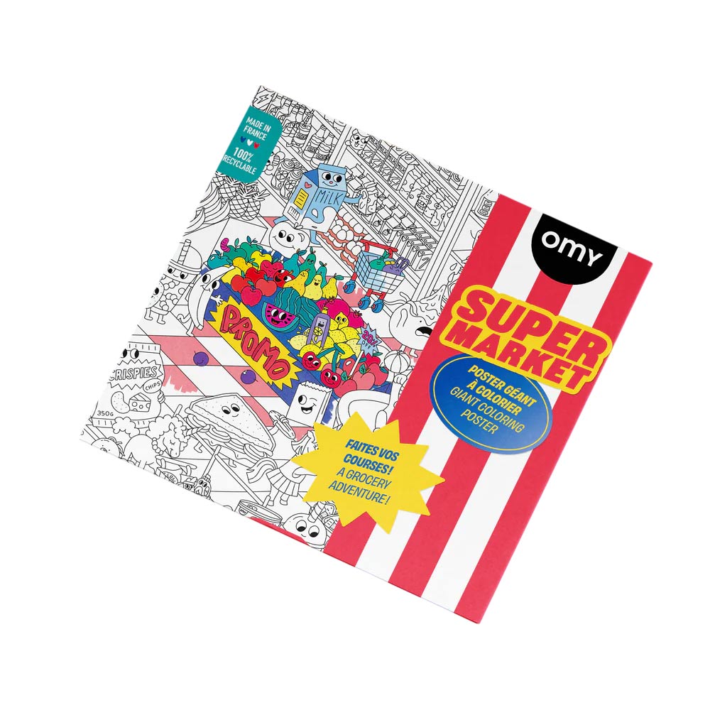 Супермаркет, которого не существует в жизни: полки с нелепыми товарами, смешные сцены и детали в каждом углу постера. Можно раскрашивать одному или всей семьёй, расстелив на полу или накрыв на стол. После раскрашивания постер легко вставить в раму и повесить как украшение. Бумага плотная, подходит для маркеров, карандашей и акварели. С трёх лет.