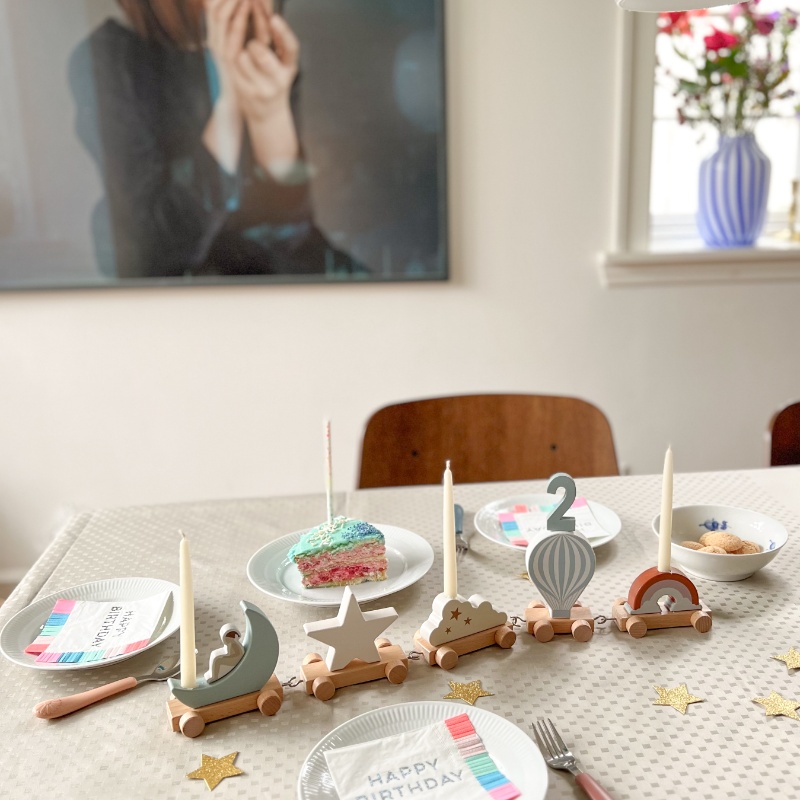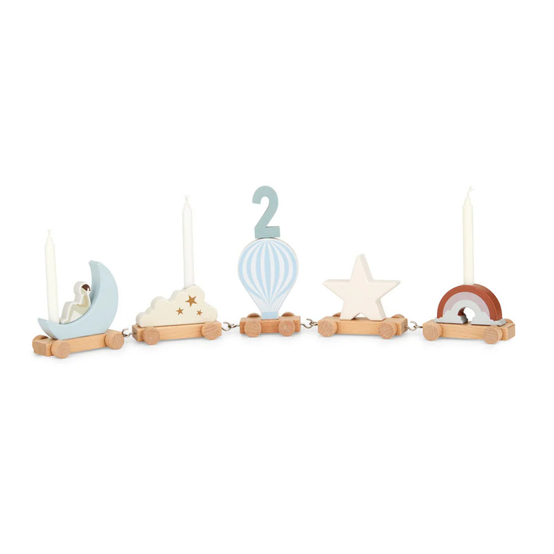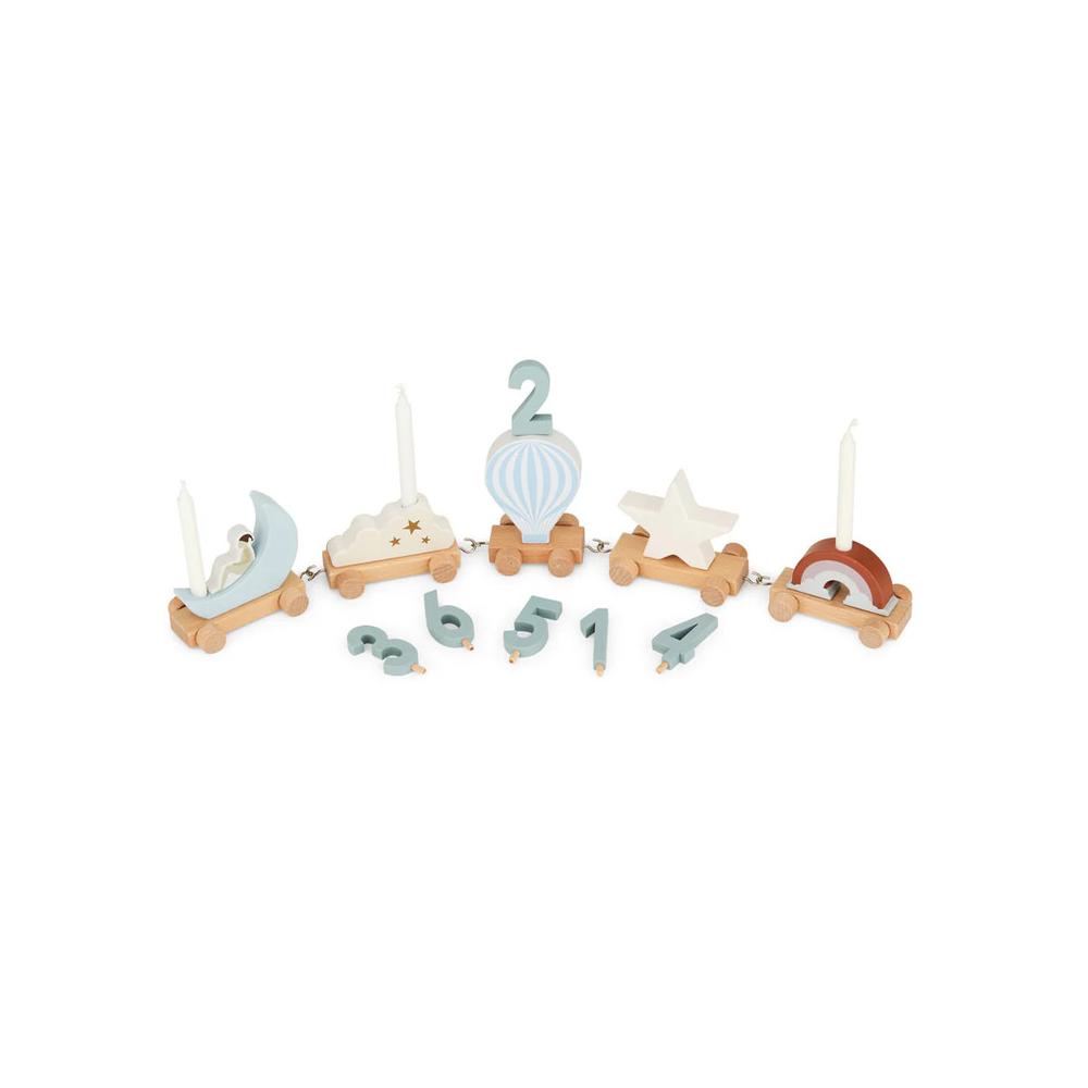 Деревянный праздничный поезд — это не просто украшение, а традиция, которую хочется повторять из года в год. Составляющие поезда можно комбинировать, расставляя свечи и цифры в честь дня рождения. Мягкая палитра с голубыми элементами делает его идеальным декором для детского праздника. Поезд отлично смотрится на праздничном столе или полке, создавая ощущение волшебства и внимания к деталям. Надёжные материалы и изысканный дизайн делают его настоящим семейным символом.