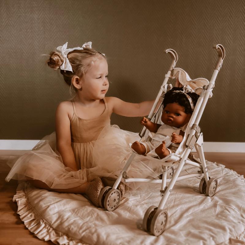 Дополнительная информация: в комплекте сумка в форме сердца, в которой можно хранить мелкие аксессуары. У коляски двойные колеса на всех ножках, рама изготовлена из железа. Вес изделия: 700 г.