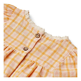 Ромпер Konges Slojd отлично подойдет и новорожденному малышу, и ребенку постарше. Это очень практичный предмет детского гардероба, который можно носить весь день с максимальным комфортом. Благодаря удобным кнопкам внизу переодеть кроху или поменять ему подгузник получится быстро и без особого труда. Проймы рукавов украшены ажурными оборками, напоминающими крылышки, а белоснежный цвет изделия помогает создать нежный образ. Ромпер сшит из натурального хлопка и не вызывает аллергии.