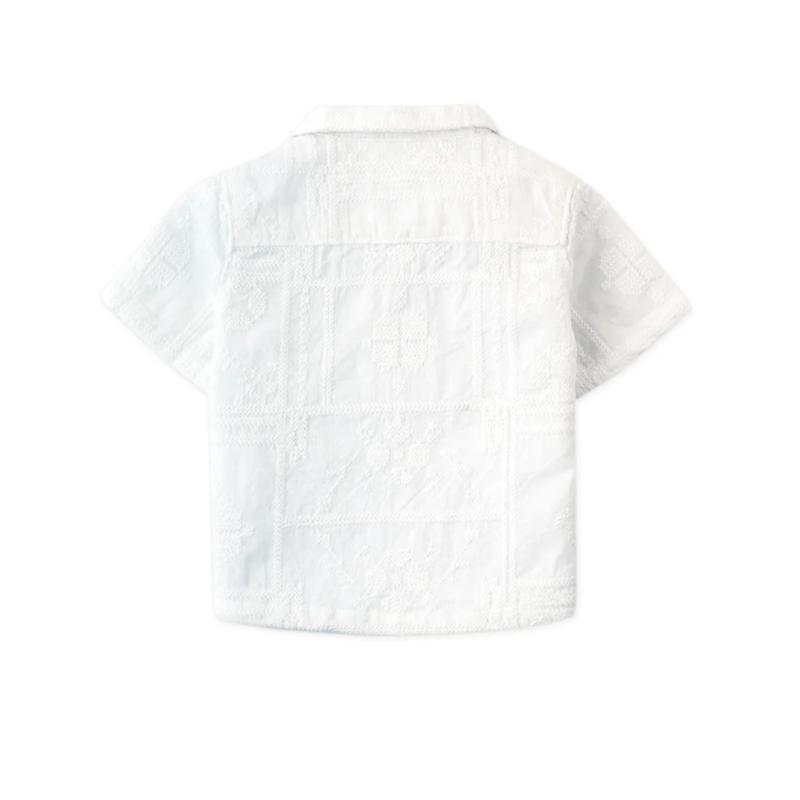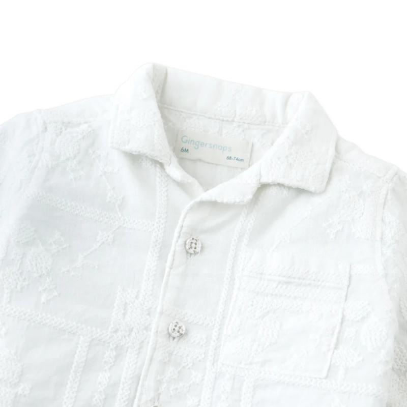 Белая рубашка на пуговицах с воротником-кемп и тонкой вышивкой — это вещь, которую хочется надевать снова и снова. Благородный крой без лишних деталей делает ее универсальной: подходит к шортам в жаркий день и к брюкам на праздник. Вышитый орнамент добавляет характер, не перегружая образ.