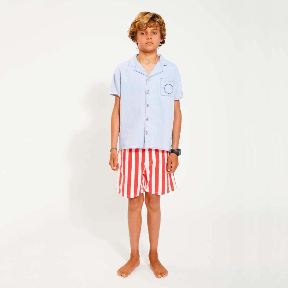 Эта рубашка в стиле гавайского принта выполнена из мягкого денима голубого цвета, что делает ее прекрасным выбором для теплых дней. Ее легкая и воздушная ткань обеспечит комфорт в любое время года, а стильный крой и насыщенный цвет добавят свежести и выразительности в образ. Отлично сочетаясь с шортами, брюками или джинсами, эта рубашка станет настоящим украшением летнего гардероба.